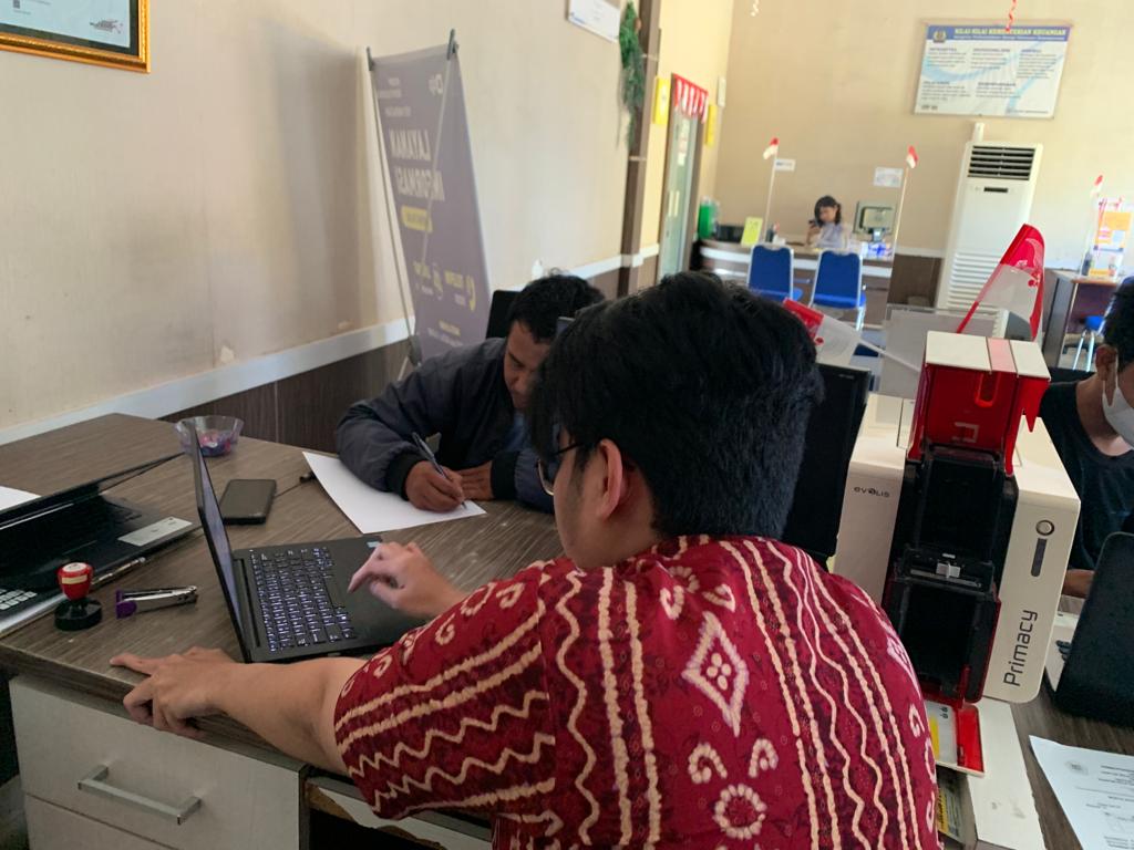 Petugas helpdesk Kantor Pelayanan, Penyuluhan, dan Konsultasi Perpajakan (KP2KP) Bontosunggu melakukan asistensi pembuatan faktur pajak pada aplikasi e-Faktur di loket helpdesk KP2KP Bontosunggu, Jalan Pahlawan, Kabupaten Jeneponto (Jumat, 1/9).