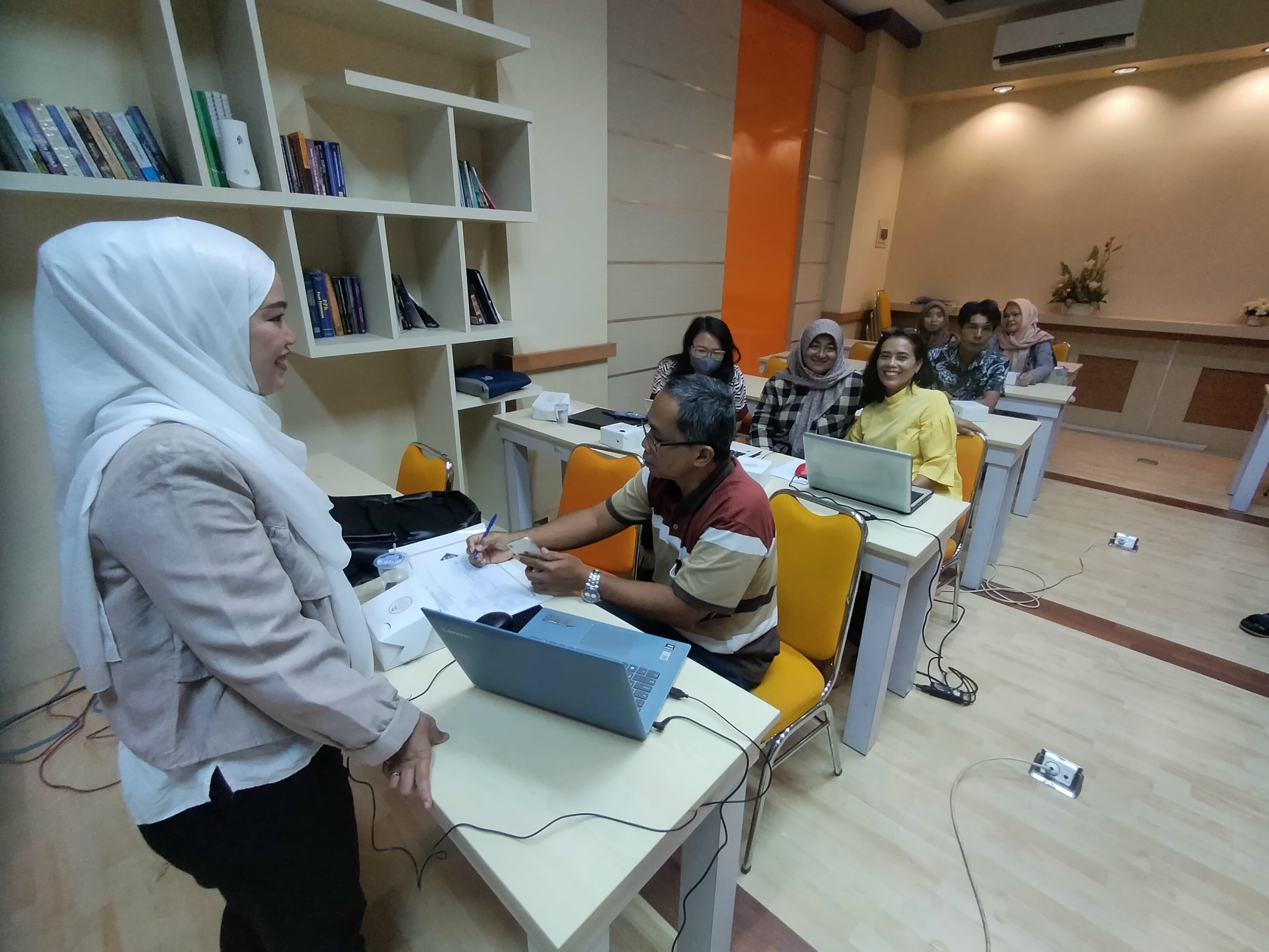 Penyuluh Pajak KPP Pratama Jambi Telanaipura, Didi Perdana Kesuma dan Auliza Oktari, menjadi narasumber pada kegiatan ini. Didi menyampaikan bahwa tujuan kelas pajak ini adalah untuk memudahkan Wajib Pajak dalam mendapatkan layanan perpajakan. "Kegiatan ini adalah bentuk dukungan KPP Pratama Jambi Telanaipura dalam memberikan kemudahan akses bagi Wajib Pajak, khususnya PKP, yang ingin mendapatkan layanan asistensi pembaruan aplikasi e-Faktur tanpa perlu mengantre di loket Helpdesk. Harapannya, melalui kelas pajak ini, PKP dapat melaksanakan administrasi pembuatan e-Faktur dan pelaporan SPT Masa PPN dengan baik tanpa kendala," ujarnya.