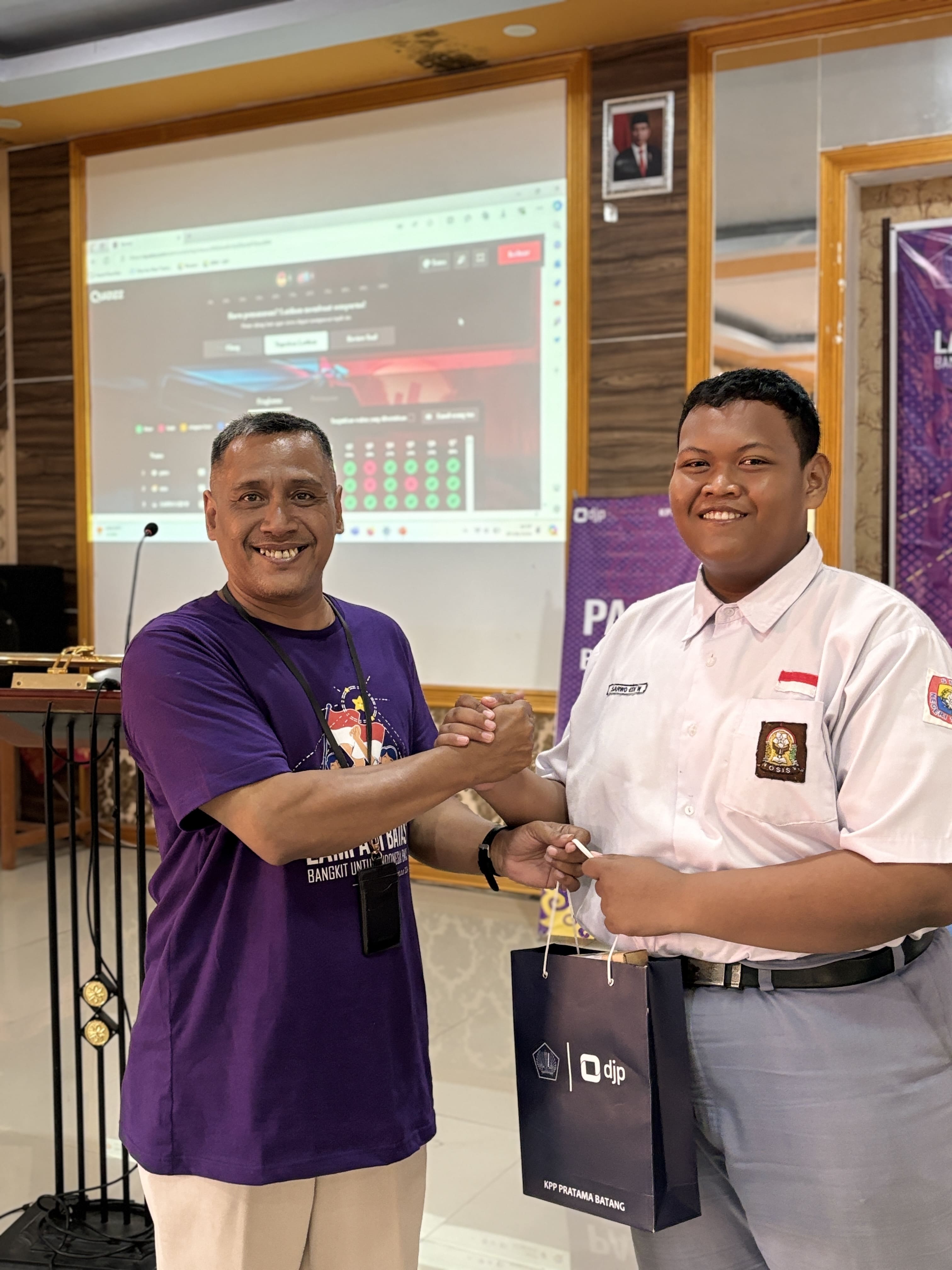 Kantor Pelayanan, Penyuluhan, dan Konsultasi Perpajakan (KP2KP) Kendal mengadakan kegiatan Pajak Bertutur dengan tema “Lampaui Batas, Bangkit untuk Indonesia Emas” di SMA Negeri 1 Kendal (Rabu, 7/8). Acara ini dihadiri oleh 55 siswa dari kelas X hingga XII dan merupakan bagian dari kegiatan serempak yang diselenggarakan oleh Direktorat Jenderal Pajak di seluruh Indonesia.