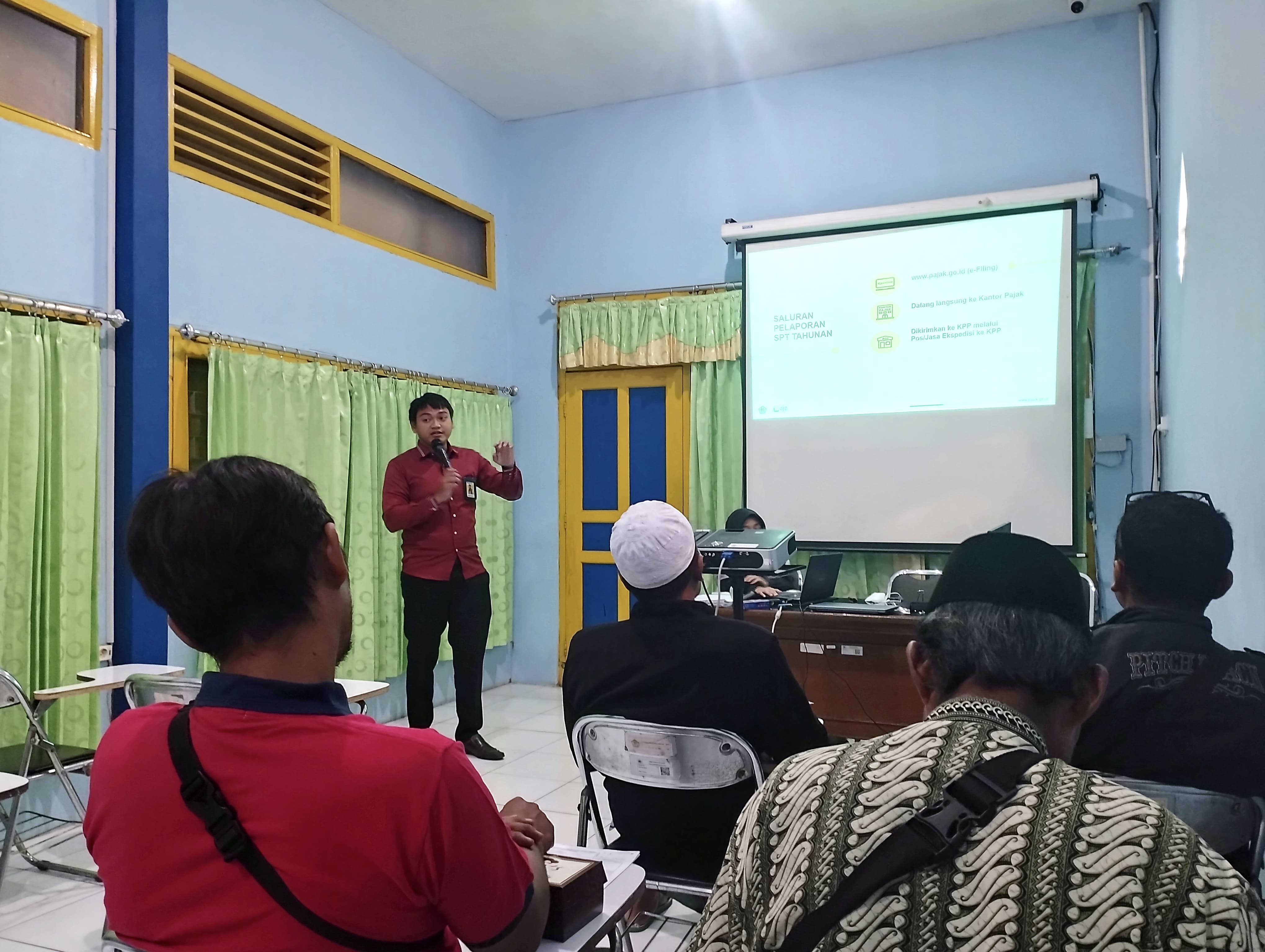 Kantor Pelayanan, Penyuluhan, dan Konsultasi Perpajakan (KP2KP) Purwodadi mengadakan kelas pajak dengan tema Kewajiban Pelaporan Surat Pemberitahuan (SPT) Tahunan bagi Wajib Pajak Orang Pribadi Usahawan di Aula KP2KP Purwodadi (Kamis, 29/8).