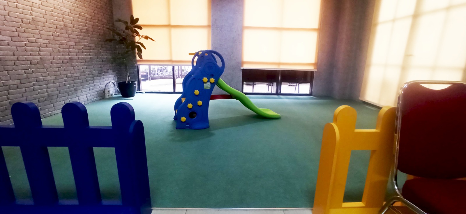 KPP Madya Dua Tangerang menyediakan area bermain berupa perosotan sebagai bentuk pelayanan prima kepada wajib pajak.