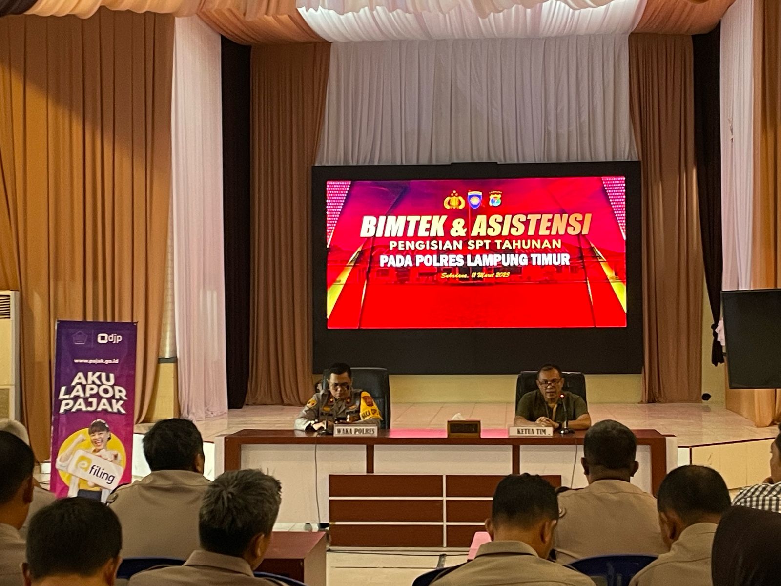 Kehadiran pojok pajak di Polres Lampung Timur adalah untuk memberikan asistensi langsung dalam pengisian laporan SPT Tahunan secara online kepada segenap jajaran Kepolisian Resor (Polres) dan Kepolisian Sektor (Polsek) di wilayah Kabupaten Lampung Timur yang berjumlah kurang lebih empat puluh orang.
