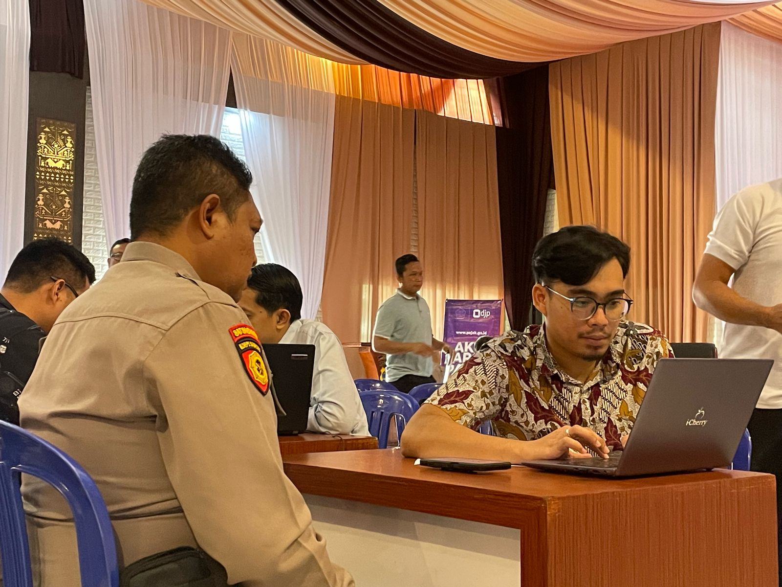 Nelson Manurung, Kepala KP2KP Sukadana, turut hadir untuk memimpin jalannya kegiatan pojok pajak yang diselenggarakan di Polres Lampung Timur. Dalam kesempatan ini, Nelson menyampaikan bahwa pihaknya telah menugaskan banyak pegawai yang terdiri dari tim penyuluh, account representative, dan beberapa pelaksana untuk turun tangan langsung membantu Wajib Pajak dalam pelaporan SPT Tahunan.