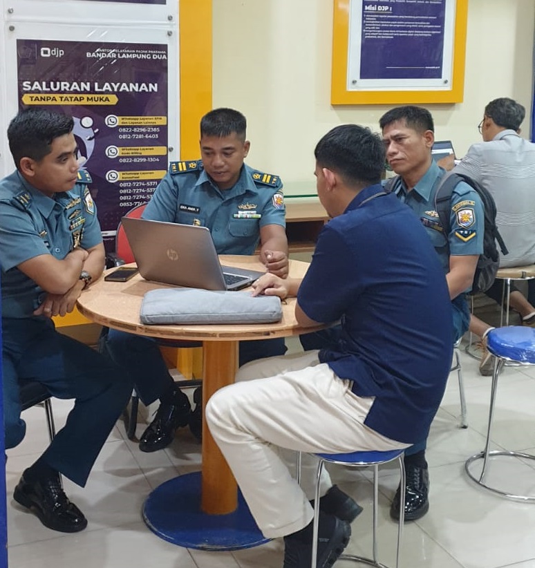 Kantor Pelayanan Pajak (KPP) Pratama Bandar Lampung Dua memberikan edukasi kepada sejumlah prajurit dari Pangkalan TNI Angkatan Laut (Lanal) Lampung bertempat di TPT KPP Pratama Bandar Lampung Dua, Kota Bandar Lampung (Rabu, 19/3).
