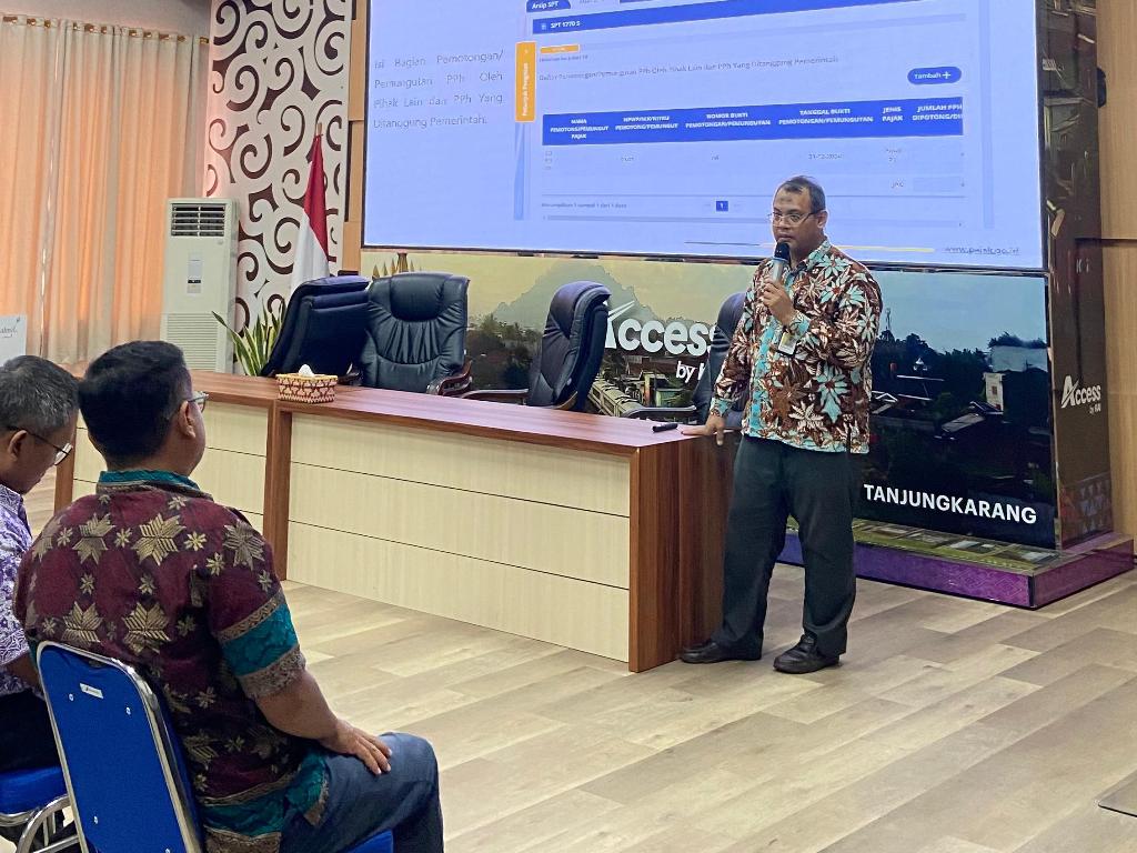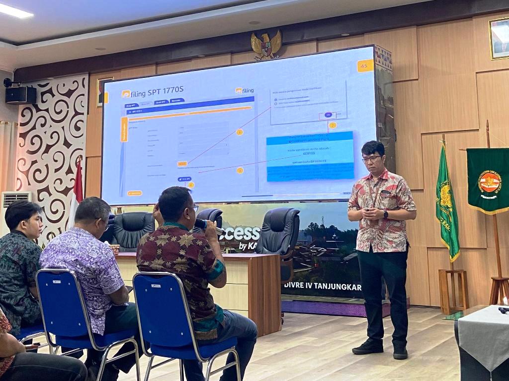 PT. Kereta Api Indonesia (KAI) Divisi Regional (Divre) IV Tanjungkarang mengundang Kantor Pelayanan Pajak (KPP) Pratama Bandar Lampung Satu untuk memberikan Sosialisasi Pelaporan SPT Tahunan kepada 40 orang perwakilan seluruh pegawai Divre IV Tanjungkarang yang hadir di Ruang Auditorium Kantor PT KAI Divre IV Tanjungkarang, Jalan Teuku Umar Nomor 97 kota Bandar Lampung (Selasa, 4/3).