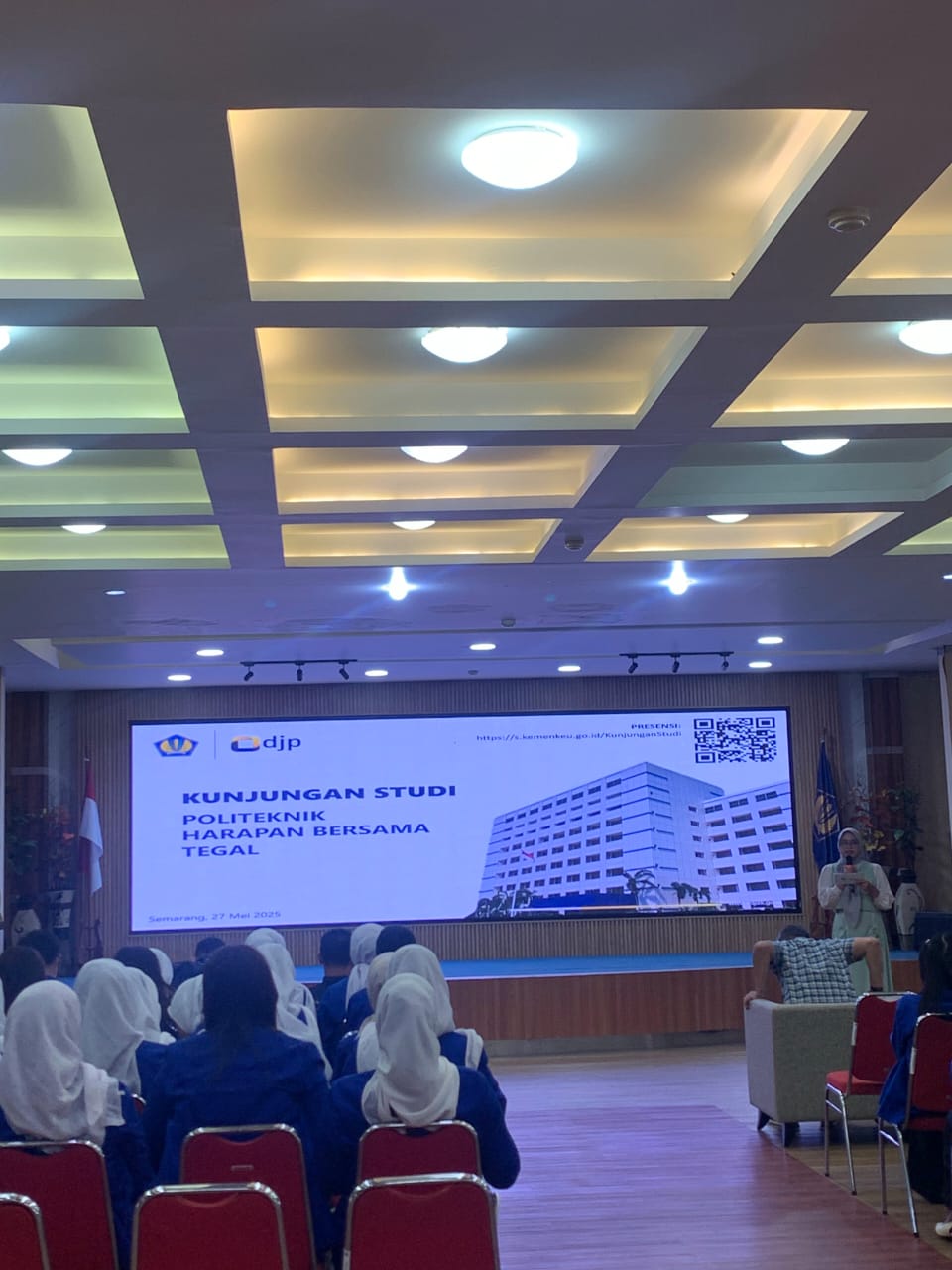 Sebanyak 50 mahasiswa Program Diploma III Akuntansi Politeknik Harapan Bersama (Poltek Harber) Tegal melakukan kunjungan studi ke Kantor Wilayah Direktorat Jenderal Pajak (DJP) Jawa Tengah I di Aula Lantai 4 GKN I Semarang, Kota Semarang (Selasa, 27/5).