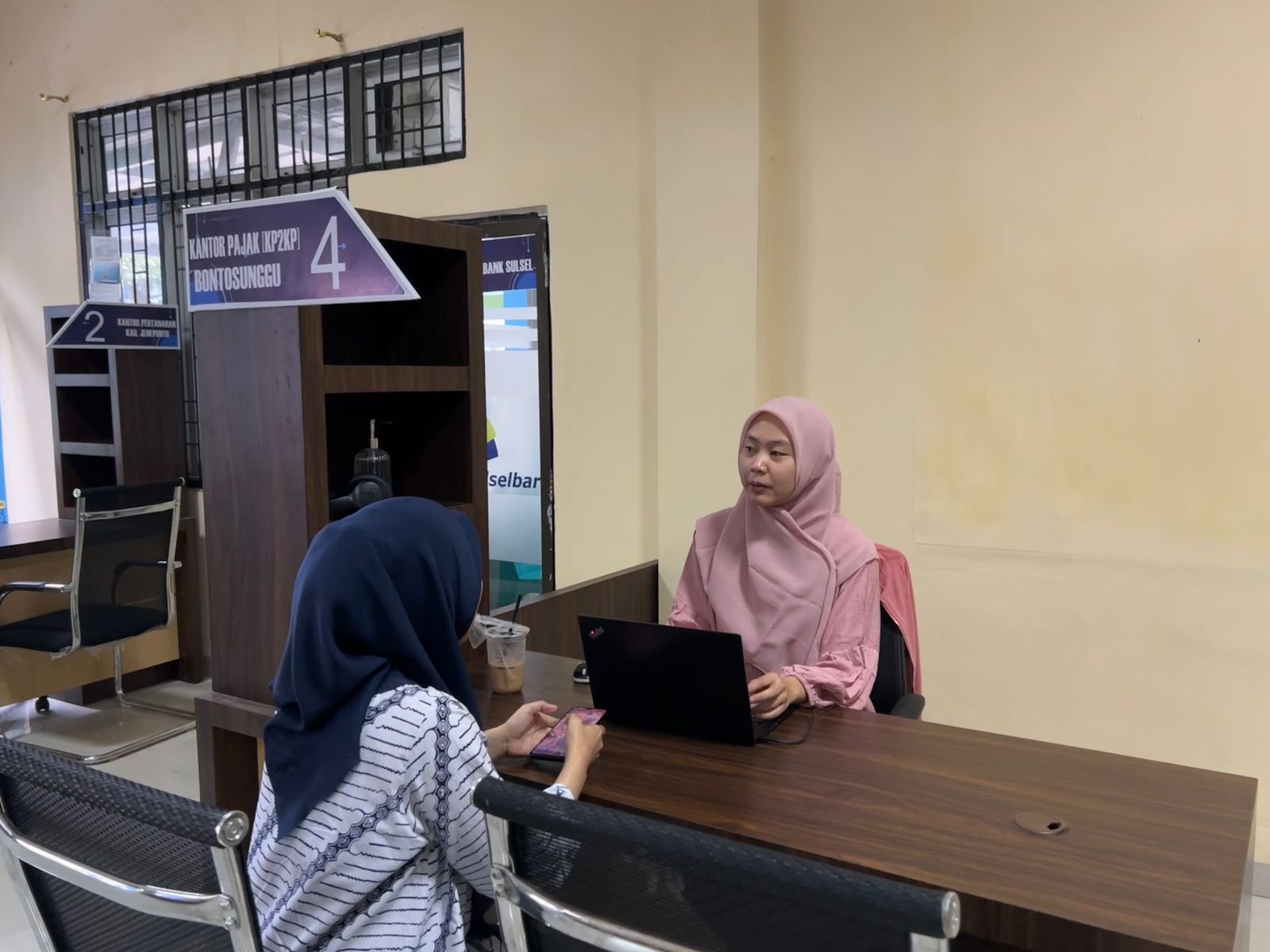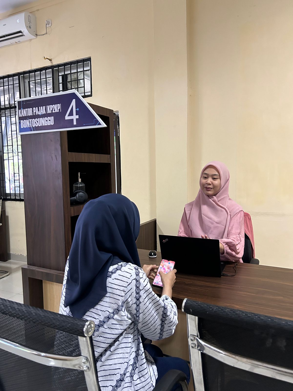 Kantor Pelayanan, Penyuluhan, dan Konsultasi Perpajakan (KP2KP) Bontosunggu melayani wajib pajak pada Mal Pelayanan Publik (MPP) di Kabupaten Jeneponto yang berlokasi pada Dinas Penanaman Modal dan Pelayanan Terpadu Satu Pintu (DPMPTSP), Jalan Lingkar, Empoang, Kabupaten Jeneponto (Kamis, 8/5).