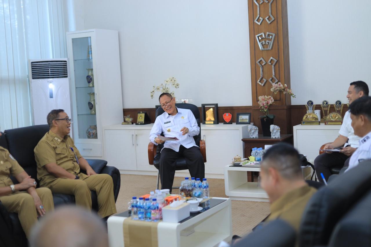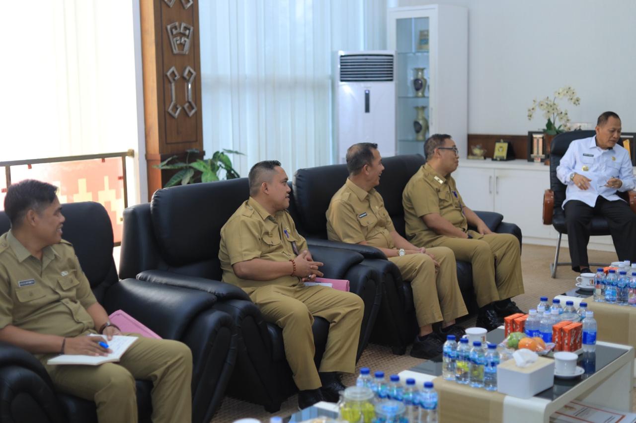 Kepala Kantor Pelayanan, Penyuluhan, dan Konsultasi Perpajakan (KP2KP) Menggala, Athhar Qolbi Tsani, melakukan pertemuan dengan Inspektur Kabupaten Tulang Bawang, Untung Widodo.