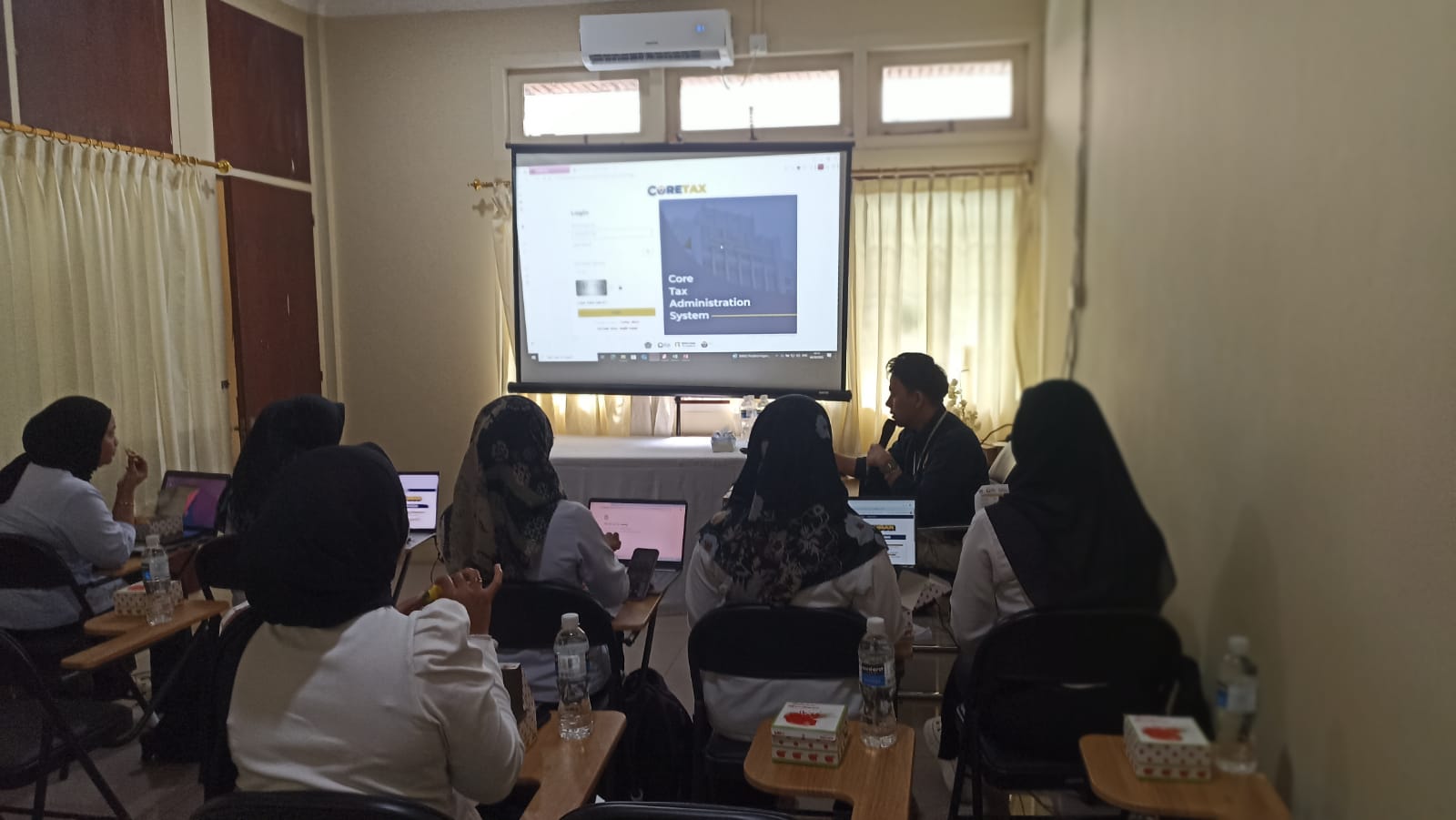 Selain pemaparan materi, edukasi perpajakan ini juga memberikan kesempatan bagi peserta untuk praktik langsung menggunakan aplikasi Coretax DJP. Pemateri dari KP2KP Dabo Singkep, Gilbert Michael P.L.T., memandu sesi praktik tersebut.