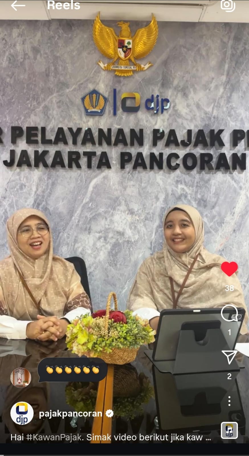 Kantor Pelayanan Pajak (KPP) Pratama Jakarta Pancoran melakukan sosialisasi perpajakan kepada wajib pajak melalui siaran langsung di akun Instagram resmi KPP Pratama Jakarta Pancoran (@pajakpancoran (Senin, 11/8).