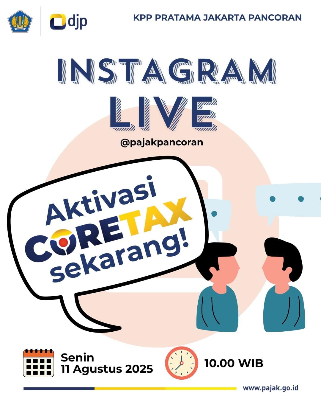 Kegiatan yang bertajuk InsTaxLive dipandu oleh Penyuluh Pajak, Shofia Diah Prawesti, bersama narasumber Penyuluh Pajak, Sarah Fauzia. Episode kali ini berisikan sosialisasi perpajakan tentang aktivasi coretax untuk menyambut pelaporan surat pemberitahuan (SPT) tahunan 2025.