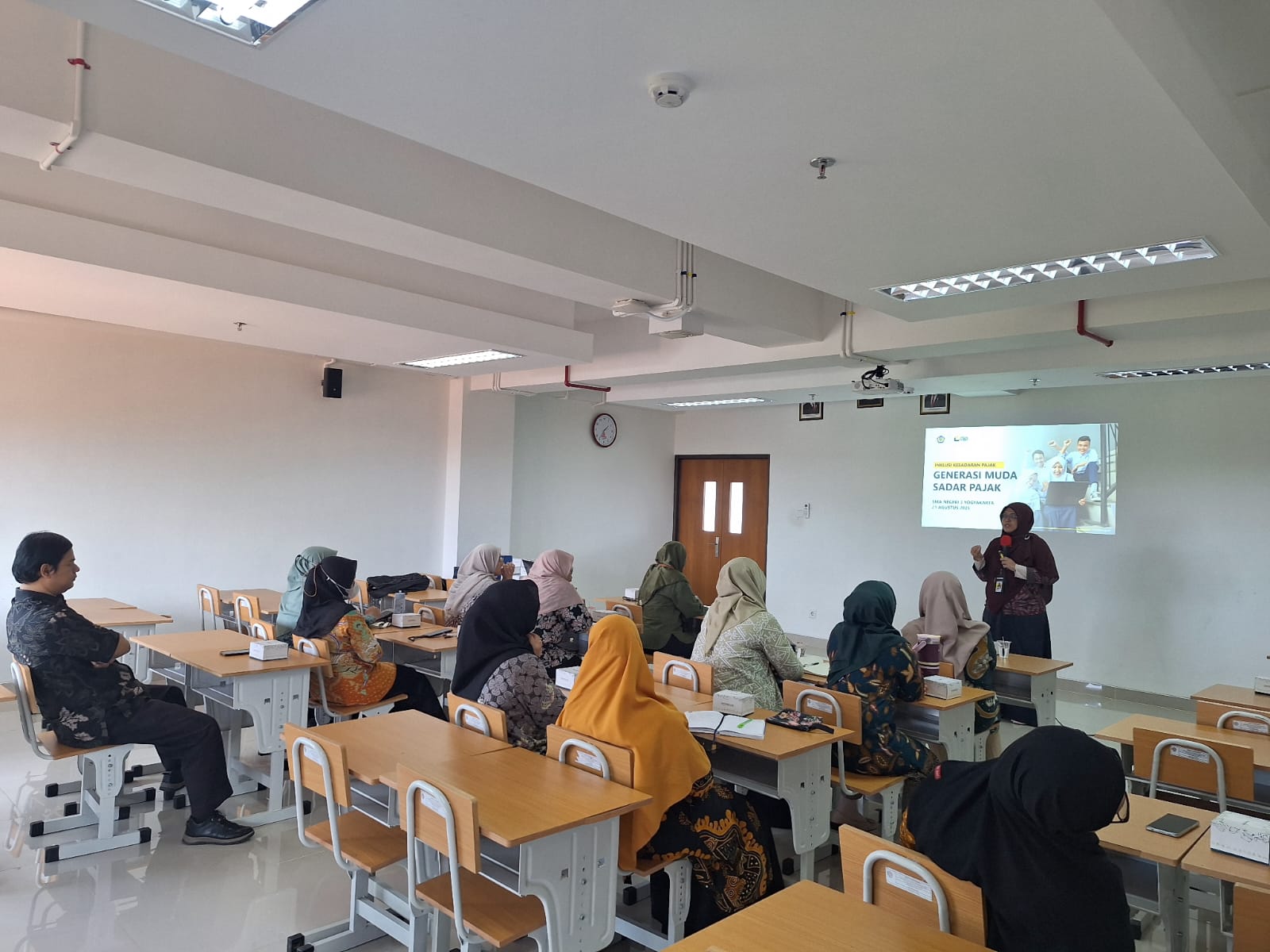Suhartini, Kepala Seksi Bimbingan Penyuluhan dan Pengelolaan Dokumen Kantor Wilayah DJP DIY, menjadi pemateri pertama. Dalam pemaparannya, Suhartini menyampaikan materi tentang Inklusi Kesadaran Pajak, yang merupakan langkah penting dalam membangun pemahaman masyarakat, terutama generasi muda, mengenai peran pajak dalam mendukung pembangunan negara.