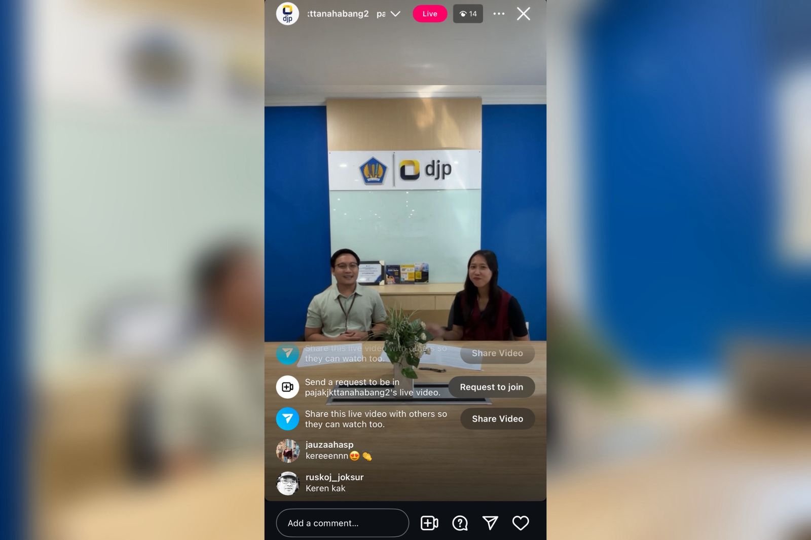 Siaran langsung Instagram tersebut dapat disaksikan ulang melalui akun Instagram @pajakjkttanahabang2.