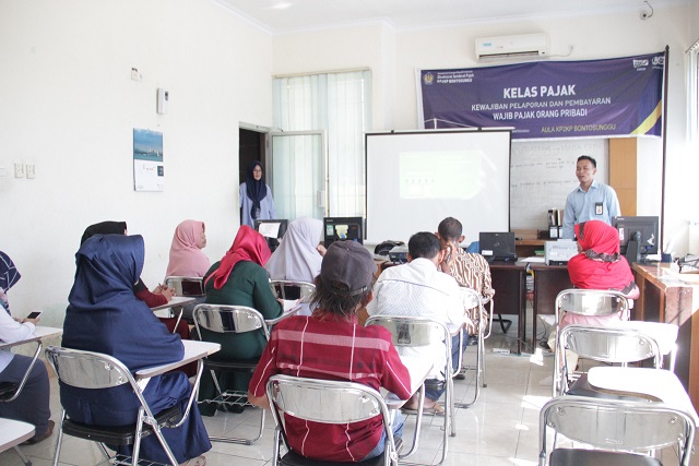 Kantor Pelayanan, Penyuluhan, dan Konsultasi Perpajakan (KP2KP) Bontosunggu melakukan sosialisasi perpajakan terkait kewajiban perpajakan Wajib Pajak Orang Pribadi (Rabu, 26/6). Acara yang dilangsungkan di Aula KP2KP Bontosunggu ini dihadiri oleh para usahawan pelaku UMKM di wilayah Kabupaten Jeneponto.