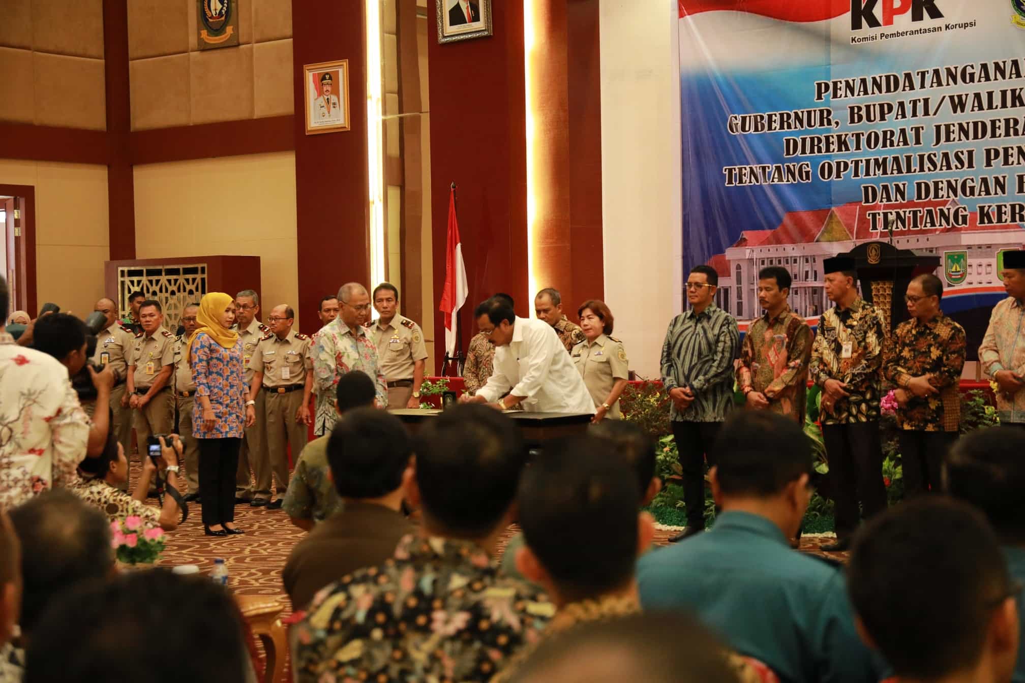 Pemerintah se-Provinsi Kepulauan Riau tandatangani Kesepakatan Bersama dengan Kantor Wilayah DJP Kepulauan Riau terkait Koordinasi dalam Upaya Optimalisasi Penerimaan Pajak Pusat, Pajak Daerah, dan Retribusi Daerah dengan disaksikan langsung oleh Ketua KPK, Agus Rahardjo dan Direktur Kitsda, Harry Gumelar di Aula Wan Seri Beni Gedung Istana Kota Piring, Pusat Pemerintahan Provinsi Kepulauan Riau, Kota Tanjungpinang pada hari ini (Senin, 27/06).