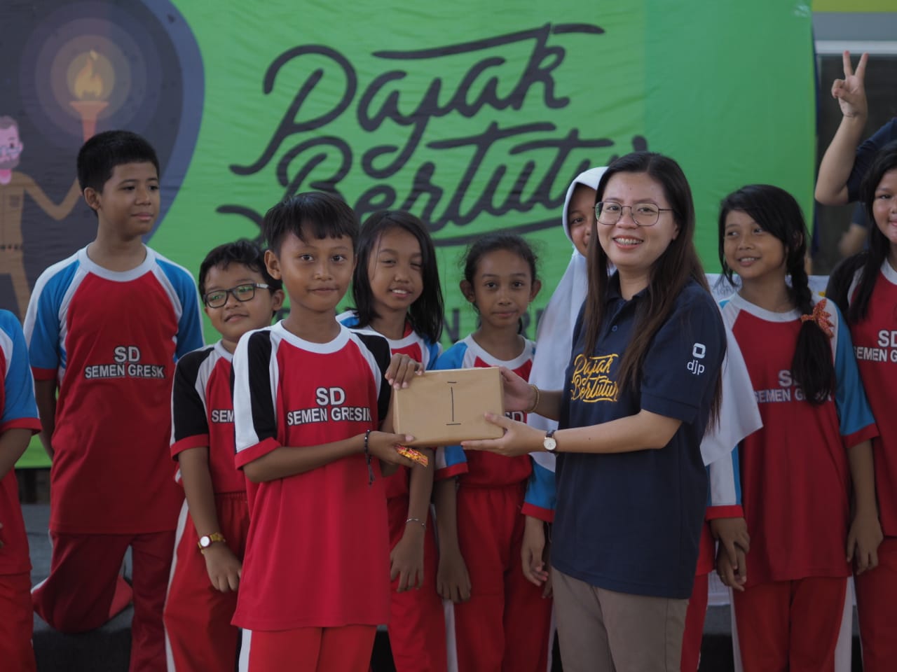 KPP Pratama Gresik Utara menggelar Pajak Bertutur di tiga jenjang pendidikan, salah satunya yaitu SD Semen Gresik jalan Awikoen, Kab. Gresik (Jumat, 22/11). Acara ini diikuti oleh 58 peserta yang terdiri dari siswa-siswi kelas V dan VI. Mereka menyimak materi dan mengikuti beragam permainan dengan sangat bersemangat.