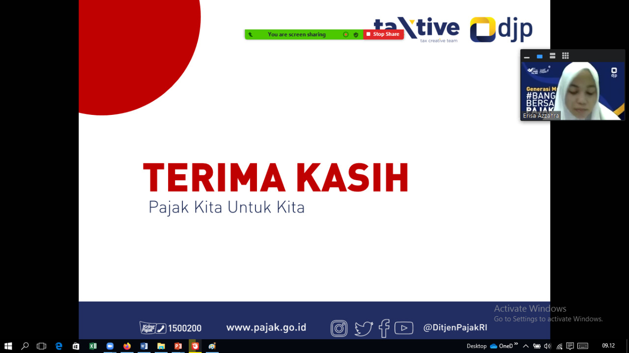Para siswa diberikan materi mengenai dasar-dasar pengertian pajak, serta manfaat dan kegunaan pajak dalam pembangunan bangsa dan negara. Walaupun dilaksanakan secara daring, sama sekali tidak mengurangi antusiasme para siswa dalam mengikuti TGTS kali ini terbukti dengan banyaknya pertanyaan yang dilontarkan para siswa terkait materi yang diberikan. Acara tersebut ditutup dengan sesi tanya jawab dan permainan ‘Kahoot’.