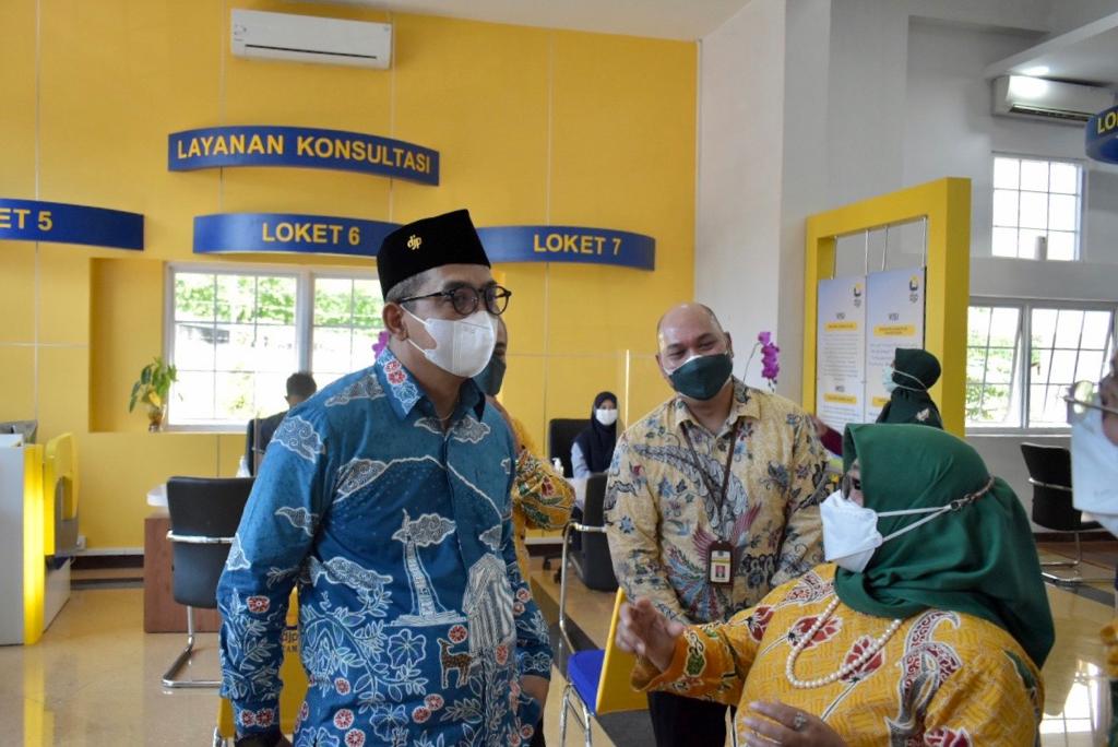 Setelah Gedung Cagar Budaya Kantor Pelayanan Pajak (KPP) Pratama Bogor diresmikan, Direktur Jenderal Pajak Suryo Utomo meninjau langsung TPT (Tempat Pelayanan Terpadu) KPP Pratama Bogor, Bogor (Kamis, 27/5).