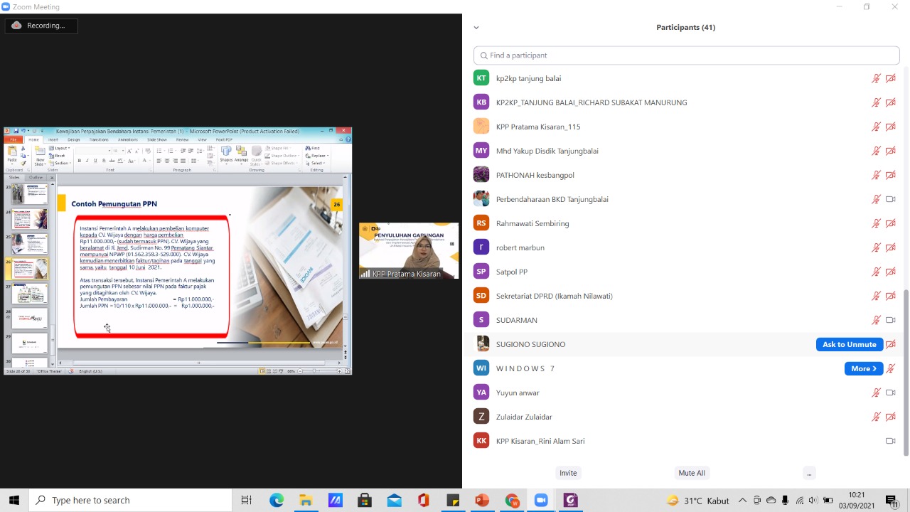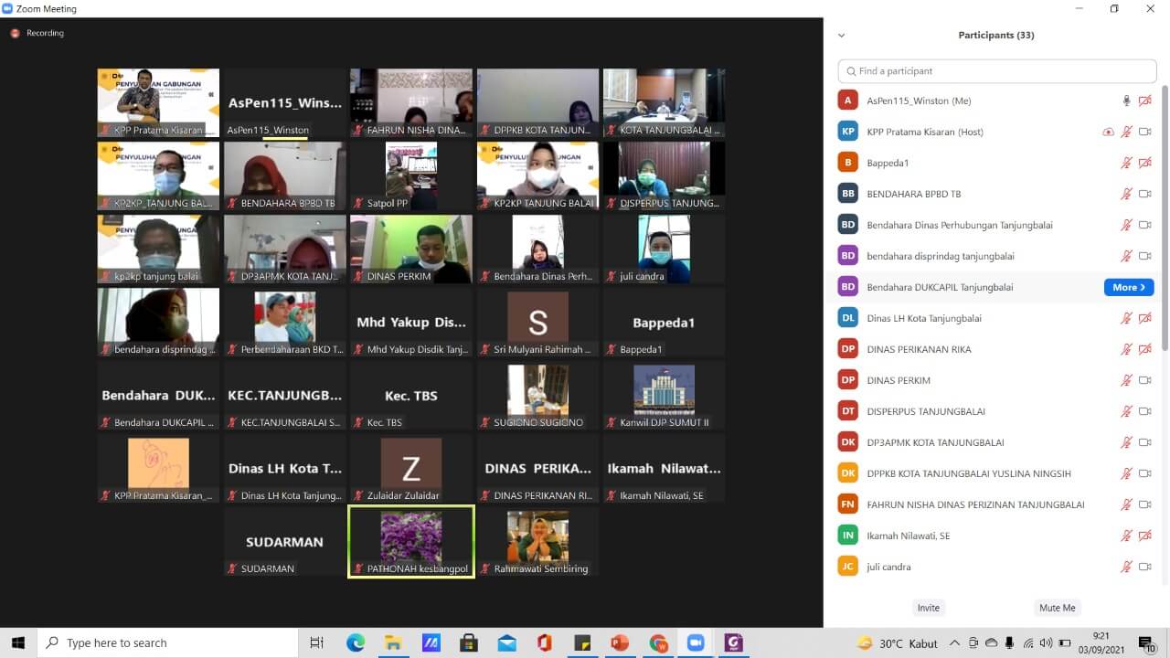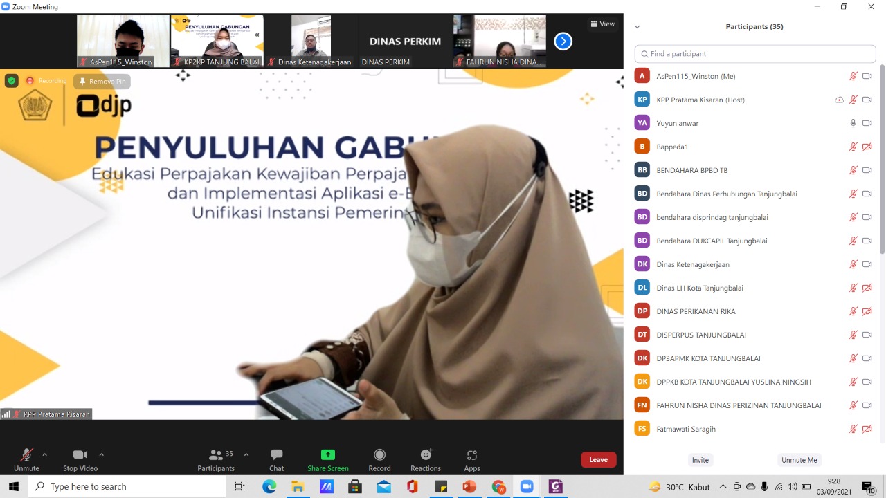 Kantor Pelayanan Pajak (KPP) Pratama Kisaran melaksanakan sosialisasi penggunaan aplikasi e-Bupot pada instansi pemerintah secara virtual melalui aplikasi Zoom Meeting di KPP Pratama Kisaran, Kabupaten Asahan, Sumatera Utara (Jumat, 3/9). Kegiatan diikuti oleh bendahara Organisasi Perangkat Daerah (OPD) di lingkungan Kota Tanjung Balai.