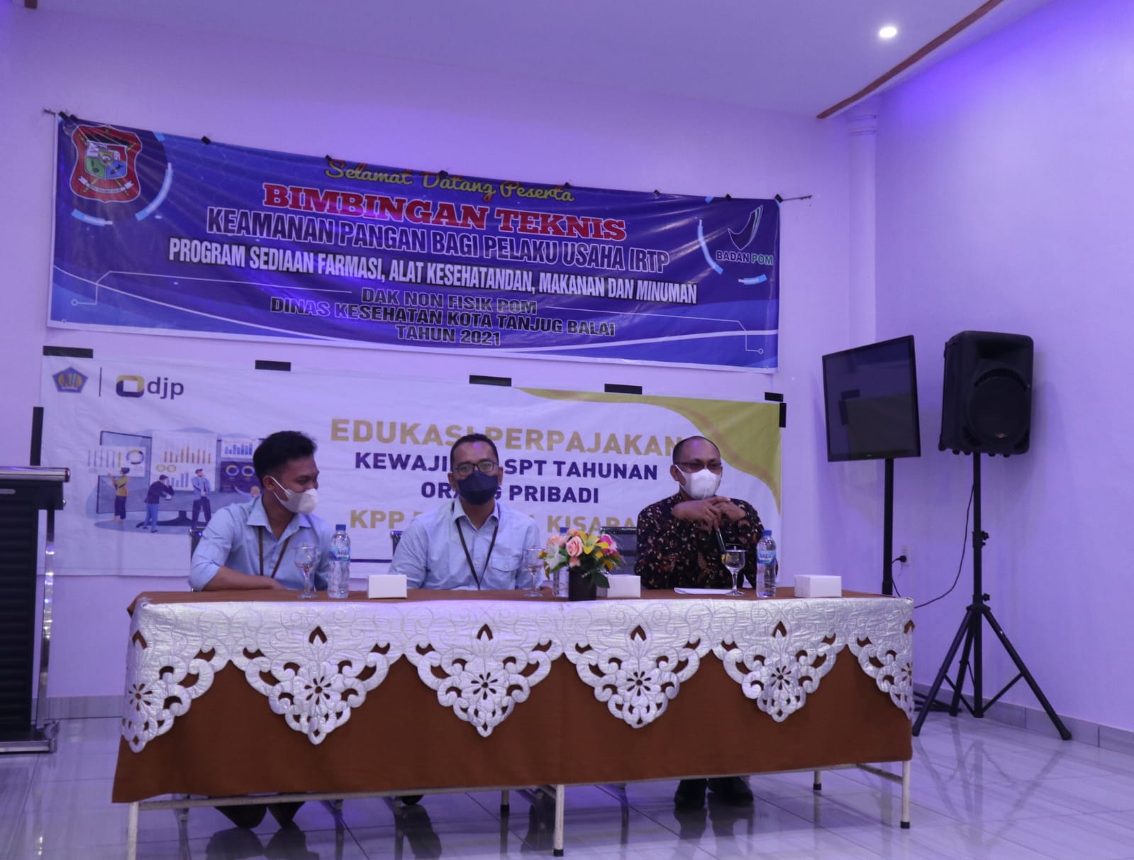Dinas Kesehatan Kota Tanjung Balai menggelar kegiatan sosialisasi Bimbingan Teknis Keamanan Pangan Bagi Pelaku Usaha Industri Rumah Tangga Pangan (IRTP). Pada Kegiatan tersebut, Dinas Kesehatan mengundang Kantor Pelayanan, Penyuluhan, dan Konsultasi Perpajakan (KP2KP) Tanjung Balai dan Kantor Pelayanan Pajak (KPP) Pratama Kisaran sebagai Narasumber dalam penyampaian materi edukasi terkait dengan alur pendaftaran Nomor Pokok Wajib Pajak (NPWP) untuk usaha IRTP, Proses pembayaran pajak, dan jenis usaha pemegang yang wajib memiliki NPWP.yang diselenggarakan di Aula Resto Bahagia, Kota Tanjungbalai, Sumatera Utara (Rabu, 13/10).