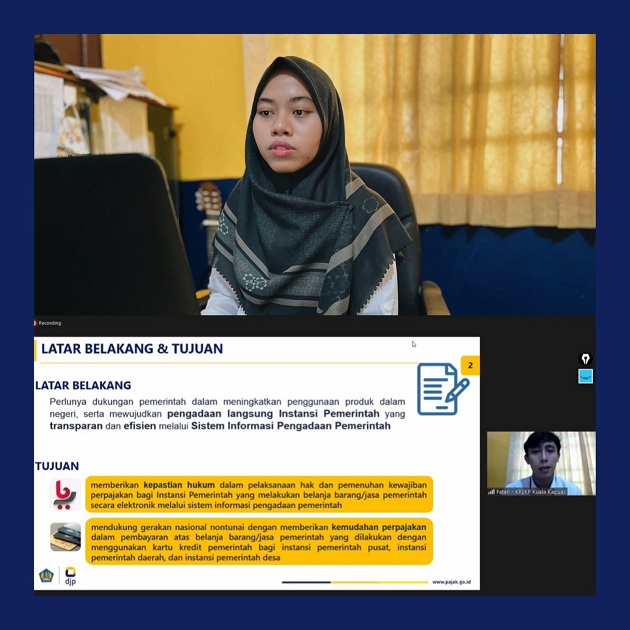 Kantor Pelayanan, Penyuluhan, dan Konsultasi Perpajakan (KP2KP) Kuala Kapuas bekerja sama dengan Sekretaris Daerah dan Badan Pengelolaan Keuangan dan Aset Daerah (BPKAD) Kabupaten Kapuas melaksanakan Edukasi Perpajakan Instansi Pemerintah yang dihadiri oleh Bendahara Instansi Pemerintah Daerah Kabupaten Kapuas secara daring (Senin, 25/04).