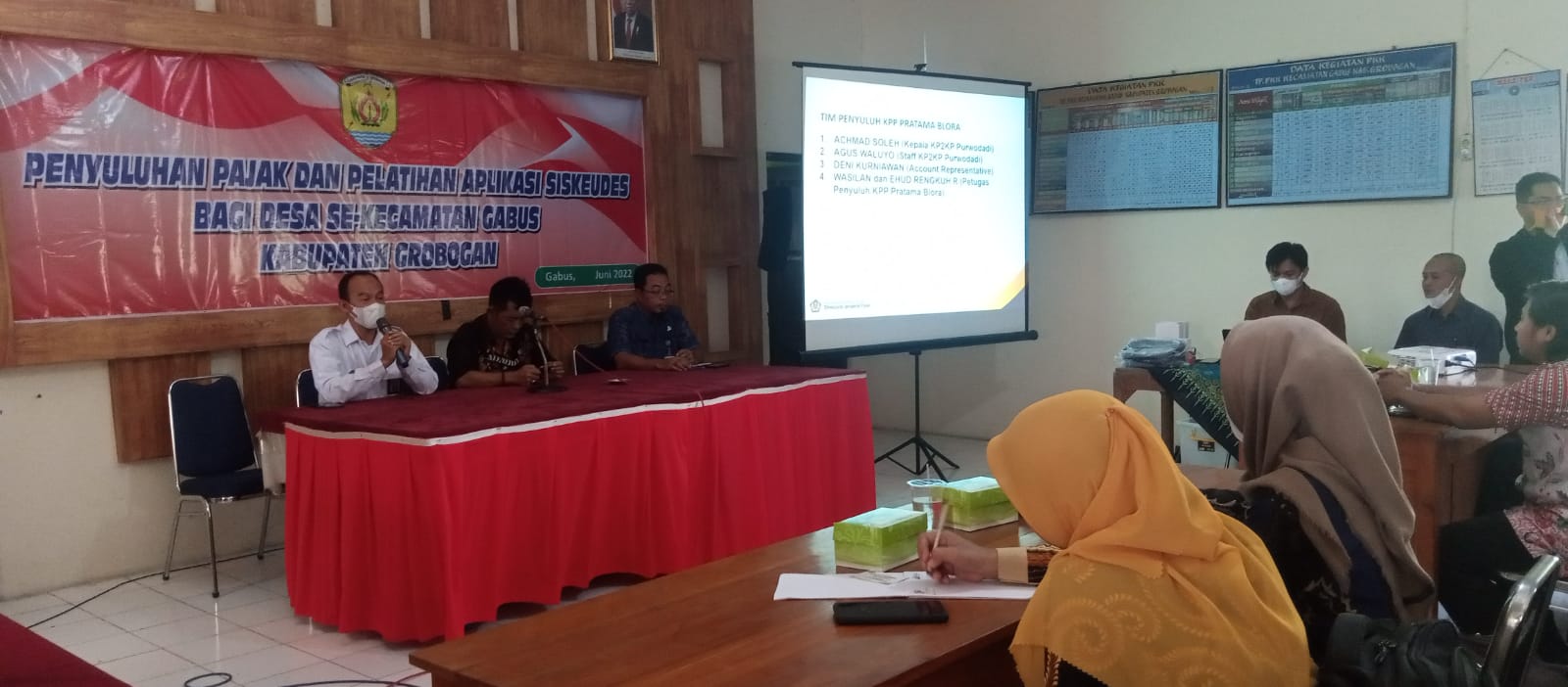Kantor Pelayanan, Penyuluhan, dan Konsultasi Perpajakan (KP2KP) Purwodadi bekerja sama dengan Kecamatan Gabus melaksanakan kegiatan penyuluhan dengan tema perpajakan atas dana desa di Aula Kantor Kecamatan Gabus, Jl. Tlogotirto, Gabus, Grobogan (Kamis, 23/6).