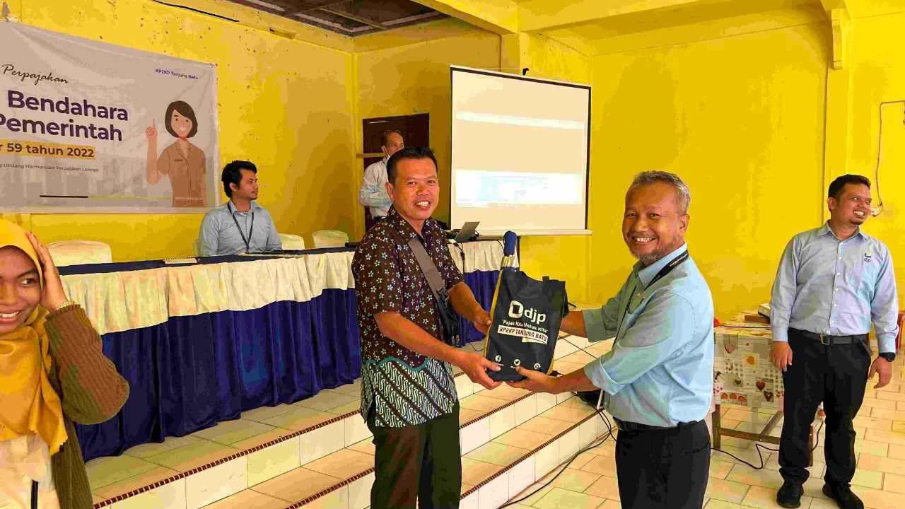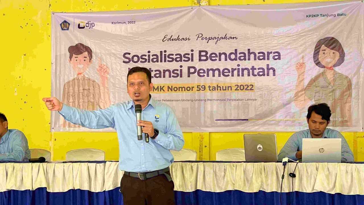 Kantor Pelayanan, Penyuluhan, dan Konsultasi Perpajakan (KP2KP) Tanjung Batu bekerja sama dengan Kantor Wilayah Direktorat Jenderal Pajak (Kanwil DJP) Kepulauan Riau mengadakan sosialisasi Undang-Undang Harmonisasi Peraturan Perpajakan (UU HPP) dan Peraturan Menteri Keuangan (PMK) Momor 59/PMK-03/2022 (PMK-59) serta peraturan lainnya yang terkait dengan UU HPP kepada para bendahara desa di Kecamatan Moro dan Kecamatan Sugie Besar, bertempat di Moro, Karimun, Kepulauan Riau (Rabu, 20/7). Sosialisasi ini disambut baik oleh para peserta yang hadir.