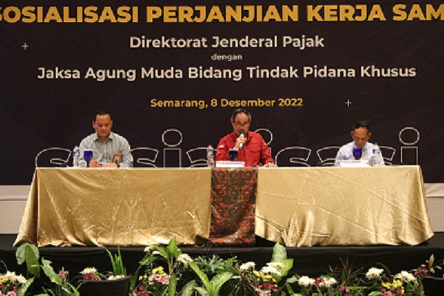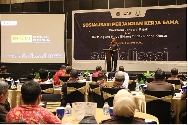 Kantor Wilayah Direktorat Jenderal Pajak Jawa Tengah I (Kanwil DJP Jateng I) mengikuti sosialisasi Perjanjian Kerja Sama (PKS) antara Direktorat Jenderal Pajak (DJP) dengan Jaksa Agung Muda Bidang Tindak Pidana Khusus (Jampidsus) di Ballroom PO Hotel Semarang (Kamis, 8/12).