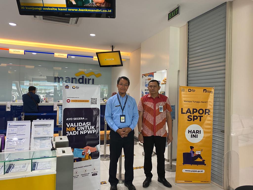 Djoko Widodo dan tim bertemu dengan para pimpinan kantor untuk menyampaikan informasi pemadanan NIK-NPWP dan pelaporan SPT Tahunan serta mengajak para pimpinan untuk bekerjasama menyebarluaskan informasi tersebut. “Kami mohon bantuannya dengan menempatkan spanduk, banner, dan leaflet di ruang pelayanan atau tempat lain yang dapat terlihat oleh pegawai, nasabah yang berkunjung dan masyarakat umum,” ujarnya.