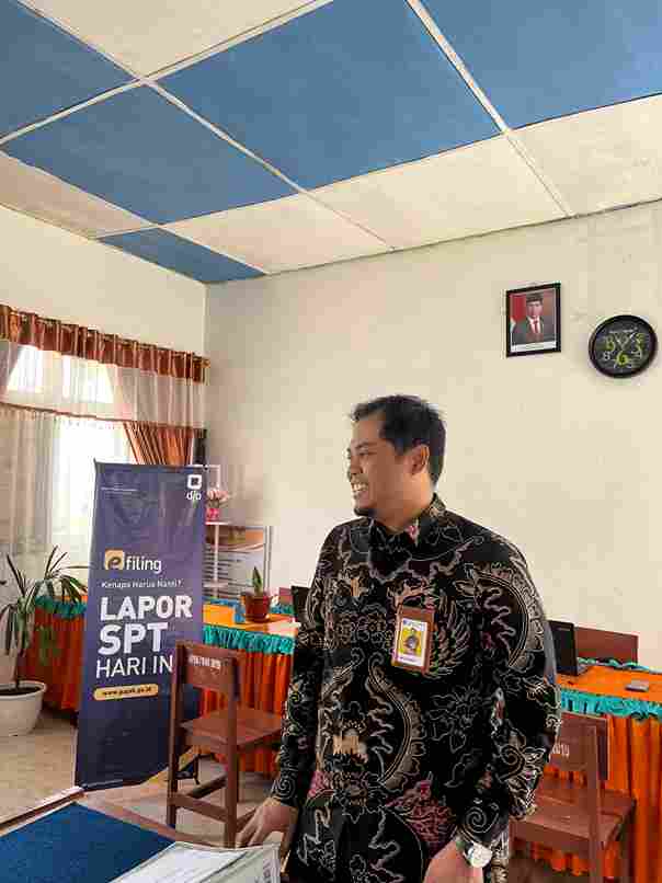 Rifqi Chorinando, selaku pegawai KP2KP Rimba Raya membantu para guru dan pegawai SMA Negeri 1 Bukit untuk melakukan pemadanan NIK menjadi NPWP dan pelaporan SPT Tahunan. Rifqi menjelaskan hal-hal apa saja yang perlu diisi pada laman www.pajak.go.id saat melakukan pemadanan NIK menjadi NPWP dan pelaporan SPT Tahunan.