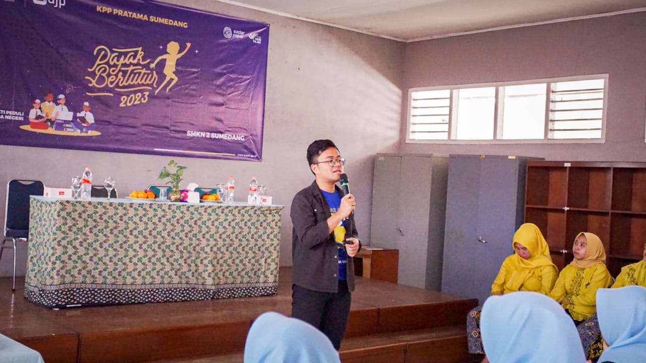 Kantor Pelayanan Pajak (KPP) Pratama Sumedang  menggelar acara Pajak Bertutur 2023 di Sekolah Menengah Kejuruan Negeri (SMKN) 2 Sumedang,  Kotakaler, Kabupaten Sumedang, Jawa Barat (Kamis, 27/7). Agenda kali ini bertemakan "Generasi Muda Sadar Pajak, Bukti Peduli pada Negeri" dan berslogan "Sehari Mengenal, Selamanya Bangga".