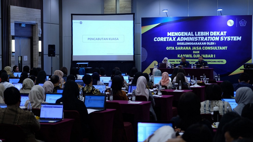 Sebanyak kurang lebih 100 konsultan pajak yang tergabung dalam Gita Sarana Jasa Consultant mengikuti kegiatan Edukasi Coretax yang terselenggara berkat kolaborasi sinergis antara Kantor Wilayah Direktorat Jenderal Pajak (Kanwil DJP) Jawa Barat I dengan Gita Sarana Jasa Consultant di Hotel Aston Tropicana, Jalan Cihampelas nomor 125-127, Kota Bandung (Rabu, 13/11).