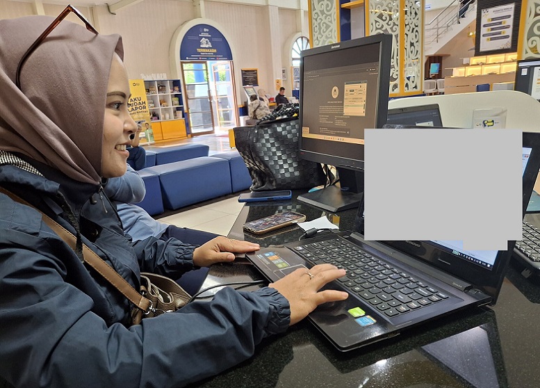 Salah satu Wajib Pajak Badan yang terdaftar di Kantor Pelayanan Pajak (KPP) Pratama Bandung Bojonagara mendatangi helpdesk KPP Pratama Bandung Bojonagara untuk dipandu dalam penggunaan kembali aplikasi e-Faktur client desktop dalam pembuatan faktur pajak keluaran, di Kota Bandung (Rabu, 12/2).