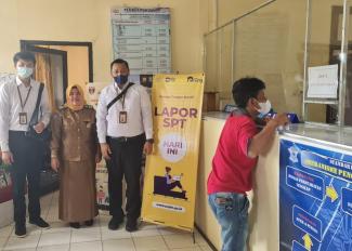 Kantor Pelayanan, Penyuluhan, dan Konsultasi Perpajakan (KP2KP) Mukomuko mengunjungi Kantor Sistem Administrasi Manunggal Satu Atap (Samsat) Kabupaten Mukomuko yang berlokasi di Jalan Sultan Gelumat, Kelurahan Bandar Ratu, Kecamatan Kota Mukomuko, kabupaten Mukomuko untuk mengajak masyarakat dan pegawai Samsat melakukan pelaporan Surat Pemberitahuan (SPT) Tahunan (Senin, 13/3).