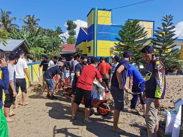 Kepala Kantor Pelayanan Pajak (KPP) Pratama Palopo bersama sejumlah pegawai yang menjadi relawan melaksanakan kegiatan pembersihan gedung Kantor Pelayanan, Penyuluhan dan Konsultasi Perpajakan (KP2KP) Masamba di Kabupaten Luwu Utara usai terdampak bencana banjir bandang (Sabtu, 18/7).