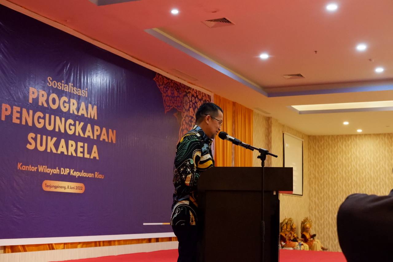 Kanwil DJP Kepulauan Riau (Kepri) menyelenggarakan acara sosialisasi Program Pengungkapan Sukarela (PPS) yang ditujukan pada sejumlah Wajib Pajak Prominen, Konsultan Pajak berserta Pejabat Forum Komunikasi Pimpinan Daerah (Forkominda) dan Pejabat Utama Propinsi Kepulauan Riau (Rabu, 8/6). Acara ini dilangsungkan di ruang Mega Ballroom Hotel CK Tanjung Pinang, Kota Tanjung Pinang.