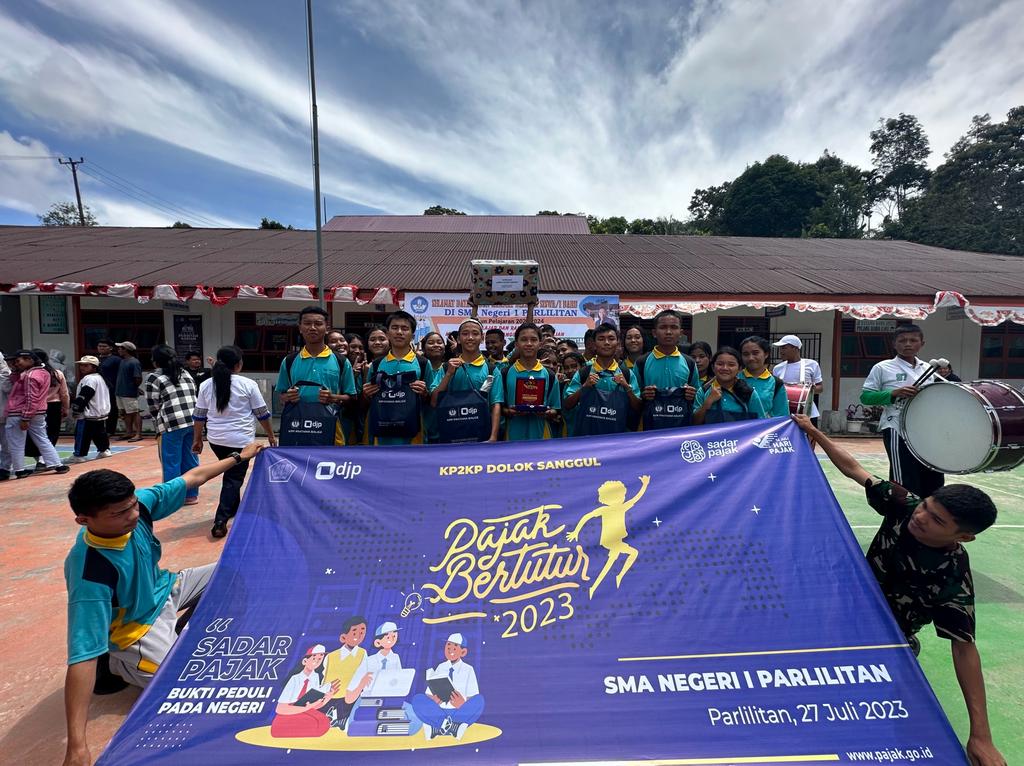 Kantor Pelayanan, Penyuluhan, dan Konsultasi Perpajakan (KP2KP) Dolok Sanggul mengadakan kegiatan Pajak Bertutur Tahun 2023 bersama siswa-siswi SMA Negeri 1 Parlilitan. Kegiatan ini dilaksanakan di lingkungan SMA Negeri 1 Parlilitan, Kabupaten Humbang Hasundutan, Sumatera Utara (Kamis, 27/7).