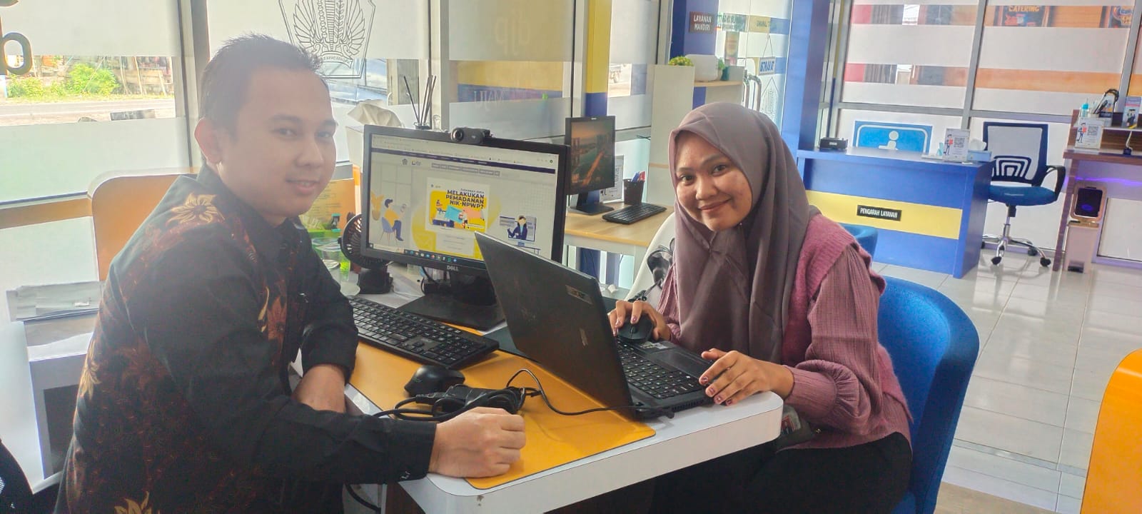 Berbekal laptop dan laporan keuangan, Rani bertanya mengenai pelaporan SPT Tahunan, “Mas, udah bisa laporan SPT Badan kan?” Annas menjawab, “Sudah bisa Mbak.” Setelah itu Annas melakukan asistensi pelaporan SPT Tahunan badan secara online menggunakan e-form.