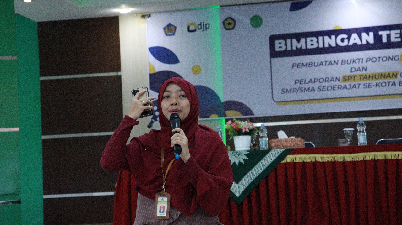 Bimbingan teknis dibawa oleh Nadiyah Anjarsari, penyuluh KPP Pratama Bengkulu Satu dan Rio Riski Pratama Penyuluh KPP Pratama Bengkulu Dua dan dihadiri oleh bendahara dan/atau bendahara gaji dari seluruh Sekolah Menengah Pertama (SMP) dan Sekolah Menengah Atas (SMA) di Kota Bengkulu. Rektor Universitas Muhammadiyah Bengkulu dan Kepala Dinas Pendidikan dan Kebudayaan Provinsi Bengkulu juga turut hadir menyambut.