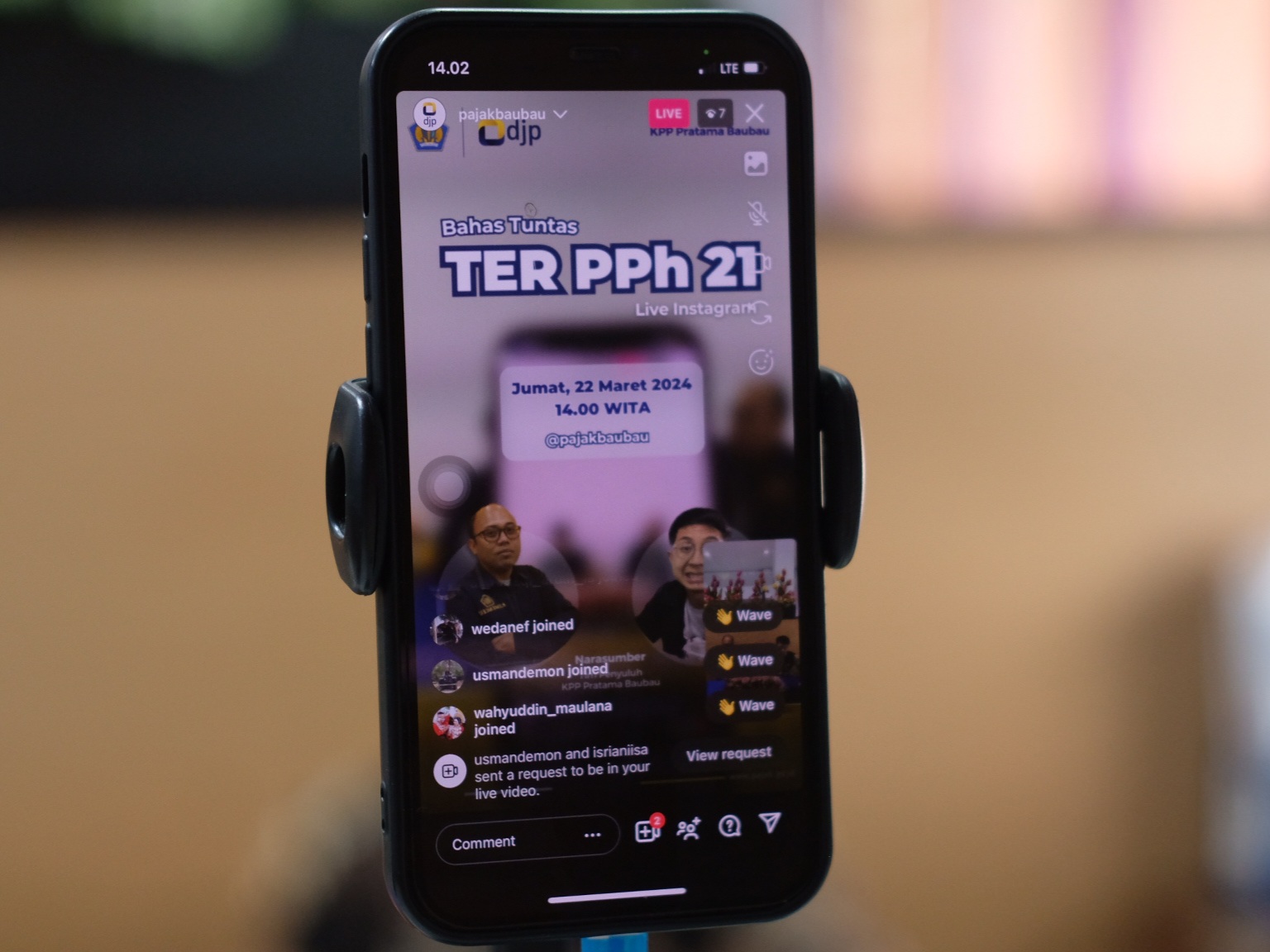 Siaran langsung yang ditayangkan pada laman Instagram resmi KPP Pratama Baubau dengan nama pengguna @pajakbaubau ini disiarkan sejak pukul 14.00 WITA. Rekaman dari siaran langsung ini masih dapat disaksikan kembali oleh wajib pajak pada laman reels akun Instagram yang sama.
