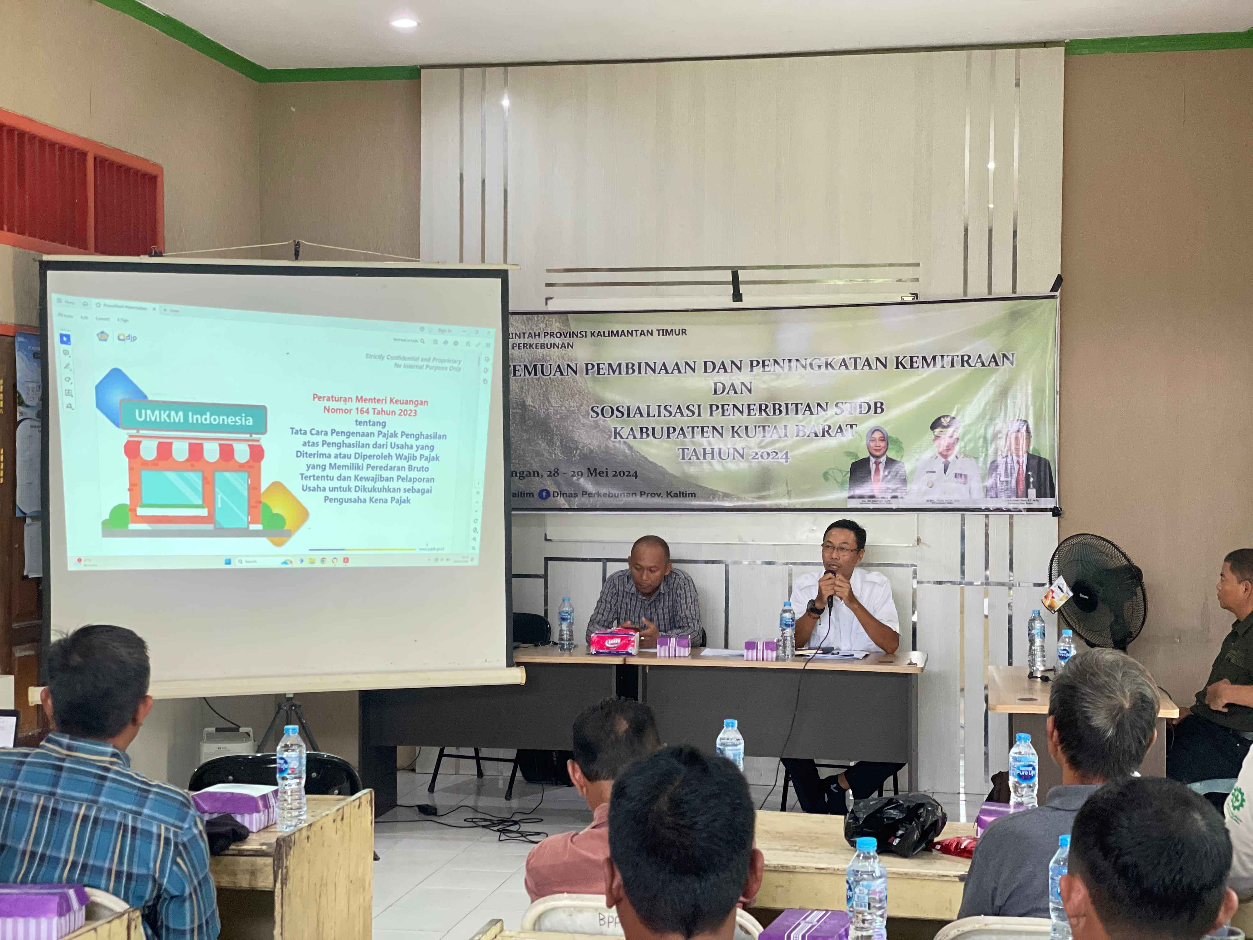 KP2KP Sendawar diundang sebagai narasumber terkait perpajakan oleh Dinas Perkebunan Provinsi Kalimantan Timur dan bekerja sama dengan Dinas Perkebunan Kabupaten Kutai Barat di acara Pertemuan, Pembinaan, dan Peningkatan Kemitraan dan Sosialisasi Penerbitan STDB Kabupaten Kutai Barat Tahun 2024. Jumlah peserta kegiatan ini adalah sekitar sepuluh orang perwakilan dari koperasi, kelompok tani, dan perusahaan perkebunan.