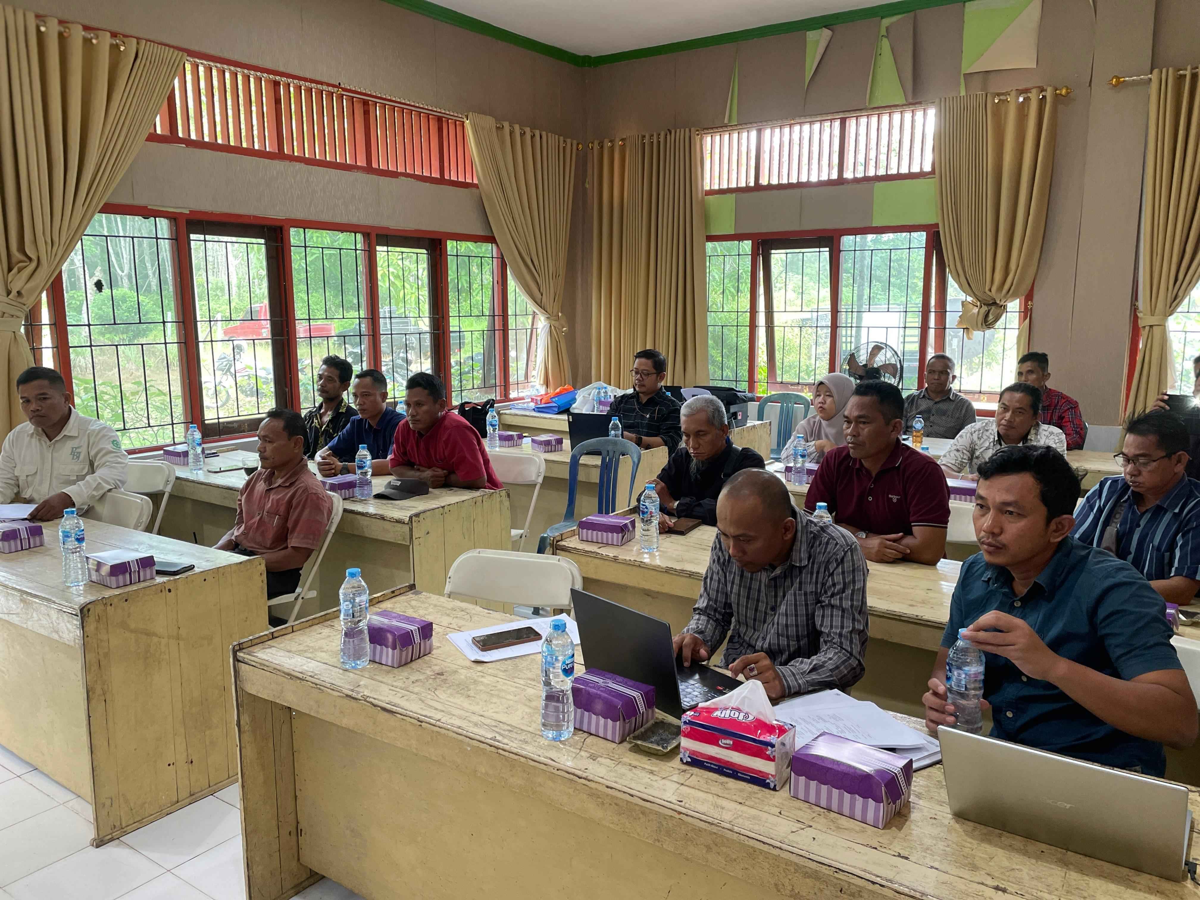 Kepala Kantor Pelayanan, Penyuluhan, dan Konsultasi Perpajakan (KP2KP) Sendawar beserta dua orang pelaksana melakukan kegiatan sosialisasi Peraturan Menteri Keuangan (PMK) Nomor 164 Tahun 2023 tentang Tata Cara Pengenaan Pajak Penghasilan atas Penghasilan dari Usaha yang Diterima atau Diperoleh Wajib Pajak yang Memiliki Peredaran Bruto Tertentu dan Kewajiban Pelaporan Usaha untuk Dikukuhkan sebagai Pengusaha Kena Pajak di Balai Penyuluhan Pertanian (BPP) Kecamatan Bongan, Kabupaten Kutai Barat (Selasa, 29/5).