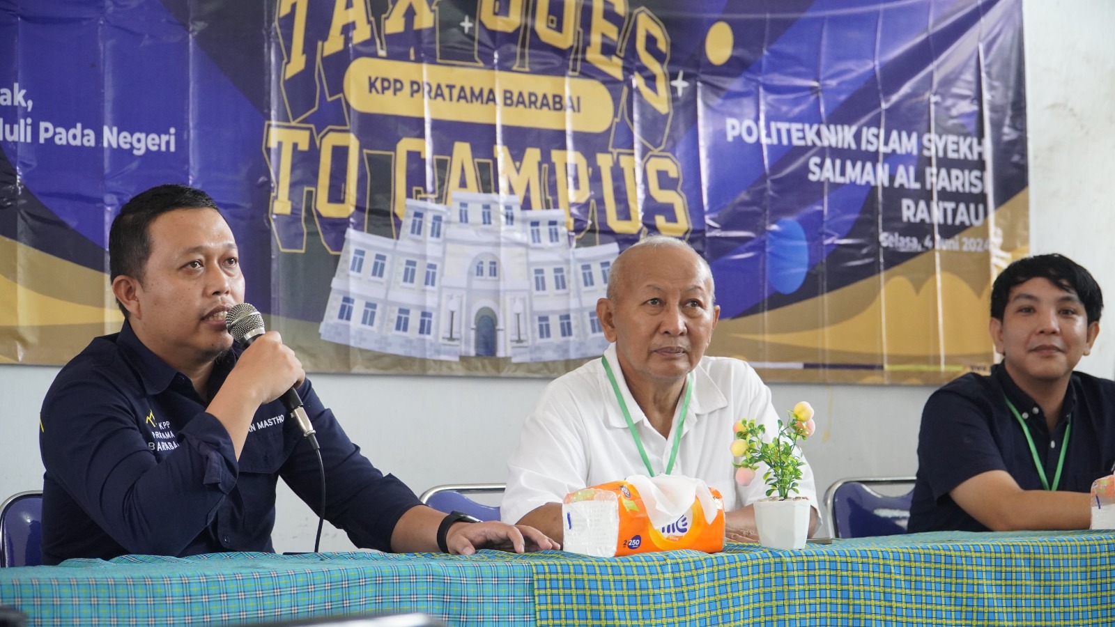 Kantor Pelayanan Pajak (KPP) Pratama Barabai mengadakan kegiatan Tax Goes to Campus (TGTC) 2024 dengan tema "Sadar Pajak, Bukti Peduli pada Negeri" di Aula Politeknik Islam Syekh Salman Al Farisi Rantau, Kabupaten Tapin (Selasa, 4/6). Kegiatan ini menjadi momen yang pertama kalinya bagi Kabupaten Tapin, khususnya bagi 25 mahasiswa Politeknik Islam Syekh Salman Al Farisi Rantau yang berpartisipasi sebagai peserta.