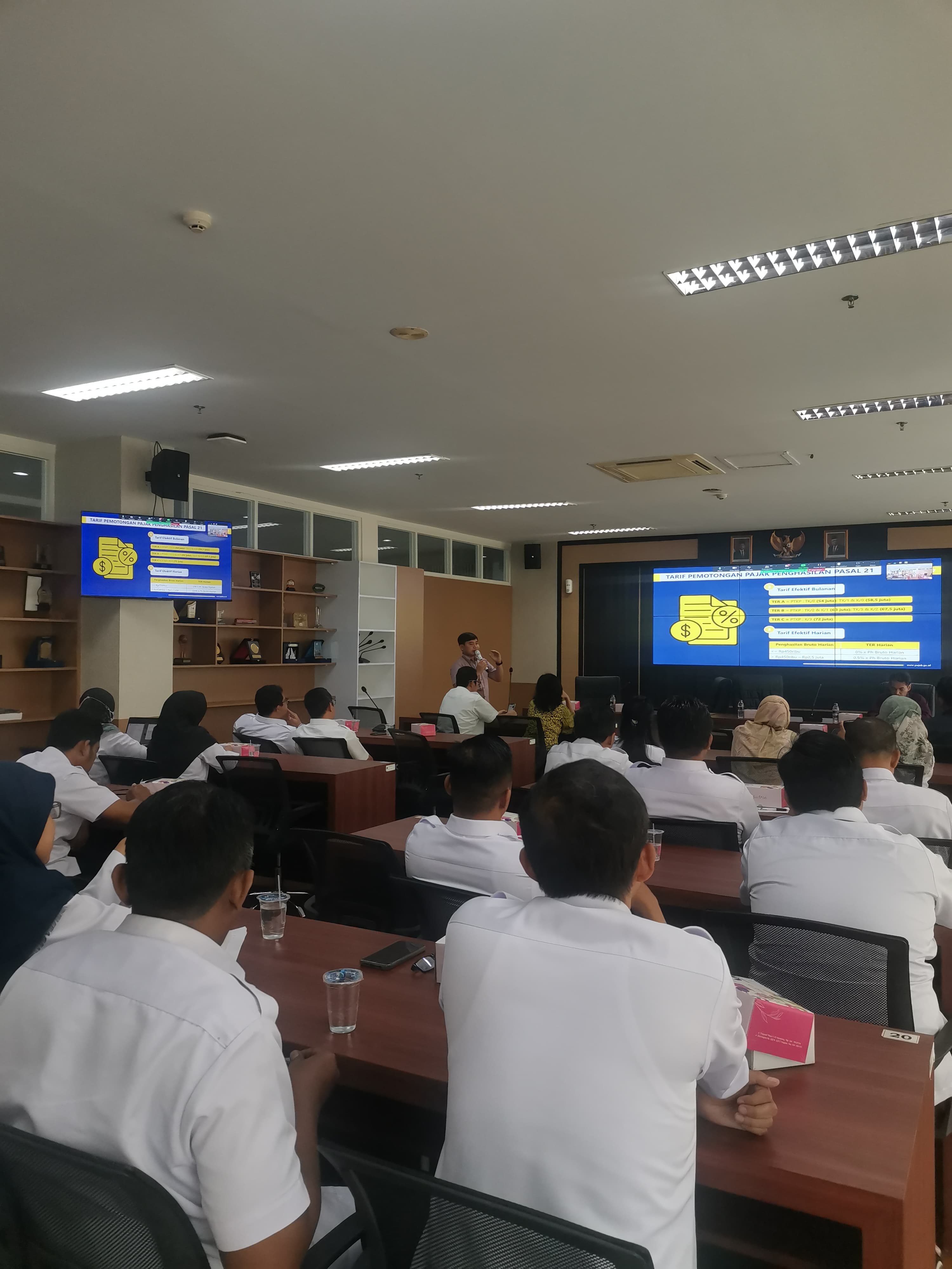 Kantor Pelayanan Pajak (KPP) Pratama Semarang Selatan yang diwakili oleh Kasi Pelayanan, Kasi Pengawasan IV dan 3 penyuluh pajak menyambangi Aula PIP Semarang (Kamis, 30/5). Sosialisasi tersebut mengupas tuntas tentang PP 58 Tahun 2023 tentang tarif pemotongan PPh Pasal 21 atas Penghasilan Sehubungan dengan Pekerjaan, Jasa, atau Kegiatan Wajib Pajak Orang Pribadi terbit pada tanggal 27 Desember 2023 dan berlaku sejak tanggal 1 Januari 2024.