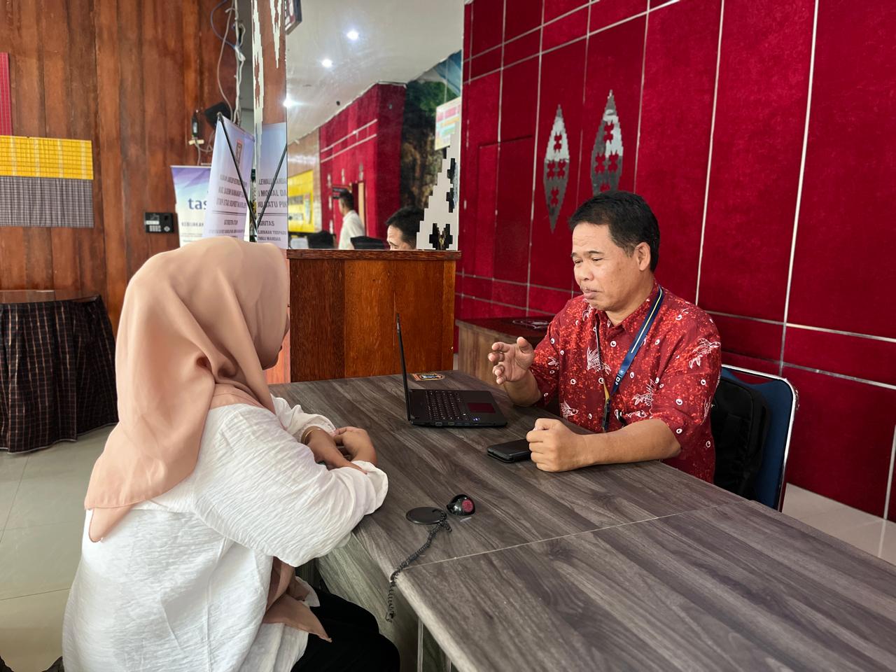 Kanto Pelayanan, Penyuluhan, dan Konsultasi Perpajakan (KP2KP) Polewali memberikan pelayanan perpajakan kepada wajib pajak yang hadiri di Loket Mal Pelayanan Publik (MPP) Dinas Perizinan Terpadu Satu Pintu (PTSP) (Senin, 7/10).