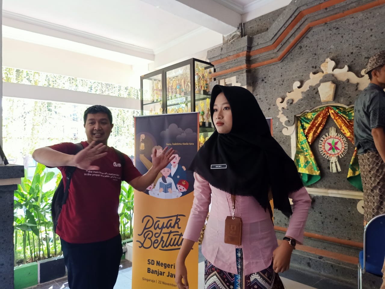 Antusiasme SDN 3 Banjar Jawa tampak ketika staf sekolah dan guru membantu tim pajak bertutur memasang spanduk dan menyiapkan sound system, laptop serta LCD (Liquid Crystal Display) untuk penyelenggaraan acara.