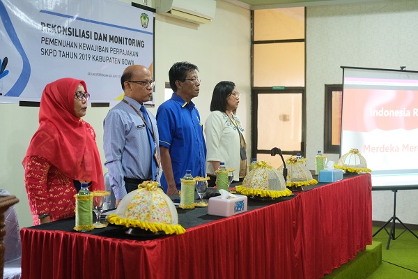 Kantor Pelayanan Pajak (KPP) Pratama Bantaeng dan Kantor Pelayanan Penyuluhan dan Konsultasi Perpajakan (KP2KP) Sungguminasa menyelenggarakan Acara Rekonsiliasi dan Monitoring Kewajiban Perpajakan Tahun 2019 di Gedung Adi Jaya Tumanurung (Kamis, 12/12). Acara ini dihadiri oleh seluruh Satuan Kerja Pemerintah Daerah (SKPD) se-Kabupaten Gowa.