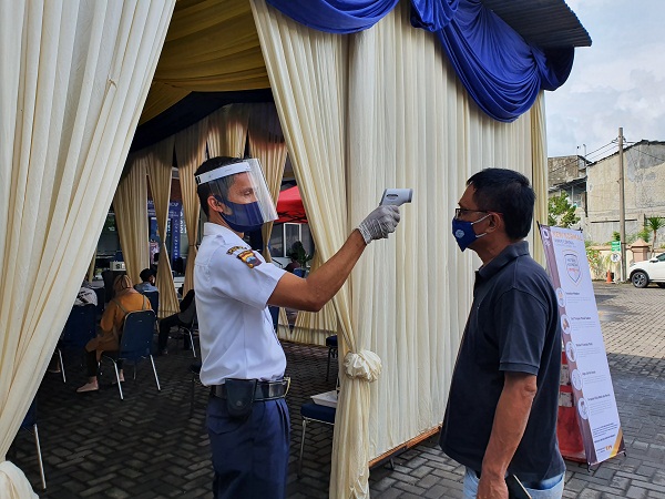 Beberapa protokol kesehatan yang diterapkan meliputi, pembagian masker dan face shield kepada seluruh pegawai, penyemprotan disinfektan dan penggunaan sarung tangan dalam penanganan berkas, pemasangan pembatas akrilik pada meja TPT dan helpdesk, pembatasan jarak di ruang tunggu, pengecekan suhu tubuh pada setiap pegawai dan wajib pajak yang akan masuk kantor, penyediaan hand sanitiser dan area cuci tangan, serta pembatasan jumlah pengunjung setiap harinya. Penerapan protokol kesehatan ini bertujuan untuk menjaga keselamatan, baik pegawai maupun wajib pajak yang hadir.