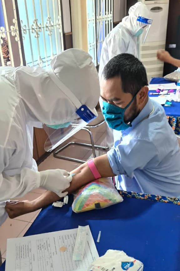 Kantor Pelayanan Pajak (KPP) Pratama Sukabumi mengadakan tes cepat (rapid test) serologi Covid-19 bagi seluruh pegawai, bertempat di aula KPP Pratama Sukabumi (Rabu, 7/10). Pengambilan sampel darah dilakukan oleh Tim Laboratorium klinik Kimia Farma.