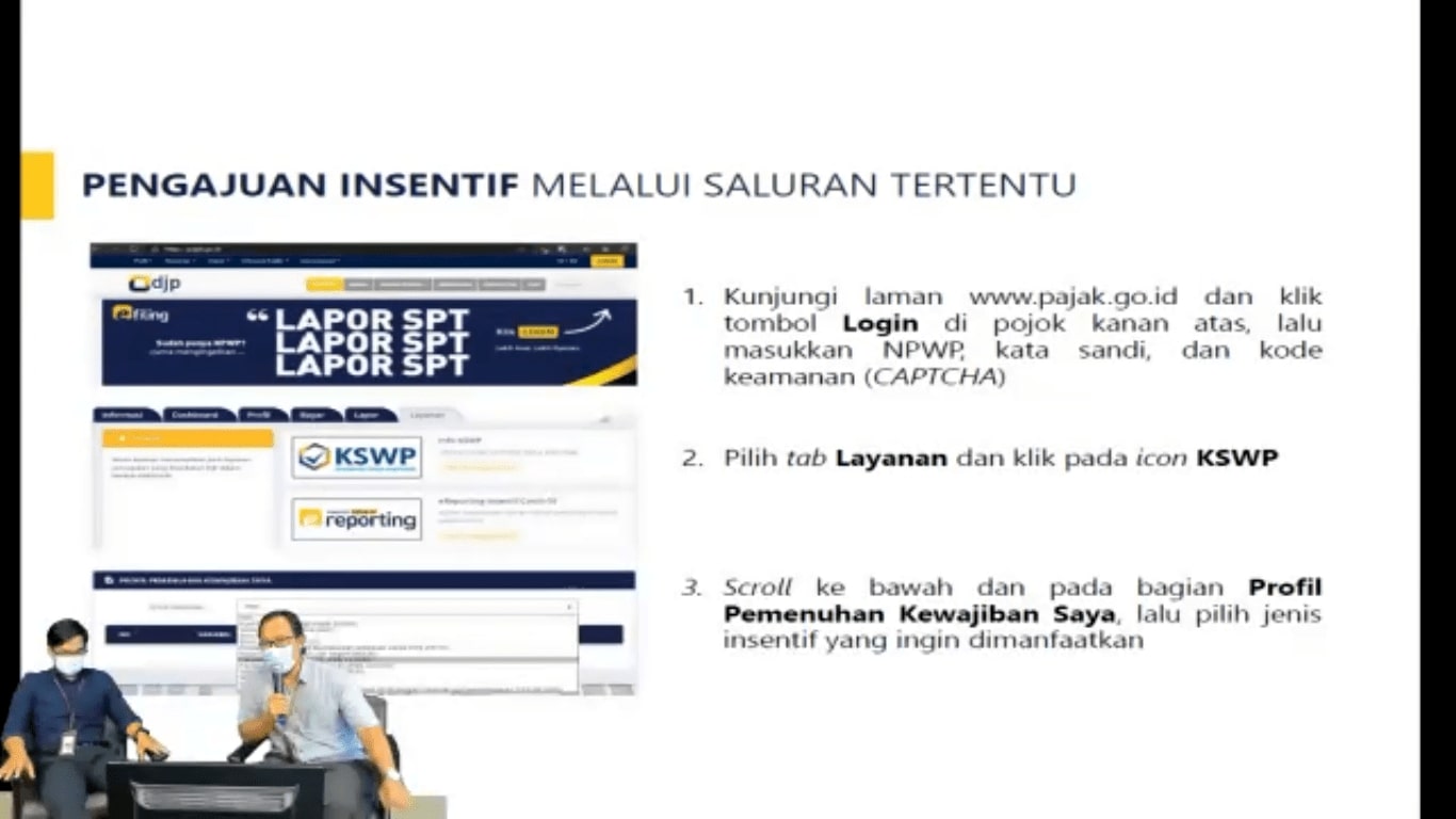 Narasumber dalam kegiatan ini adalah Kepala Seksi Pengawasan dan Konsultasi I KPP Pratama Timika Sigit Hardiyanto dan Account Representative Tri Cahyo Nugroho. Setelah penyampaian materi tentang insentif perpajakan, acara dilanjutkan dengan sesi tanya jawab. Dengan diadakannya sosialisasi ini, Sigit dan Tri berharap wajib pajak yang mengikuti kegiatan tersebut dapat memahami mengenai insentif pajak yang diberikan oleh pemerintah di masa pandemi Covid-19.